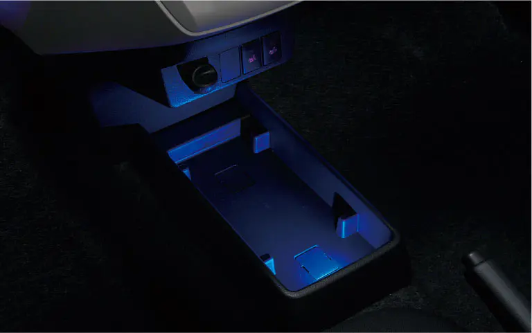 ドリンクホルダー&センターフロアトレイイルミネーション スモールランプと連動して光るイルミネーション。発光色ブルー。 ¥17,688 【消費税抜き¥16,080(本体価格¥7,500+標準取付費¥8,580)】 【適用】全車 ※写真の色、照度は実際と異なる場合があります。