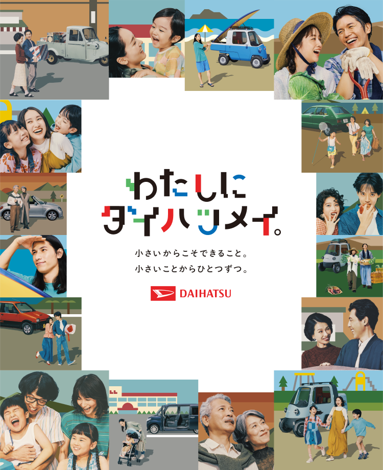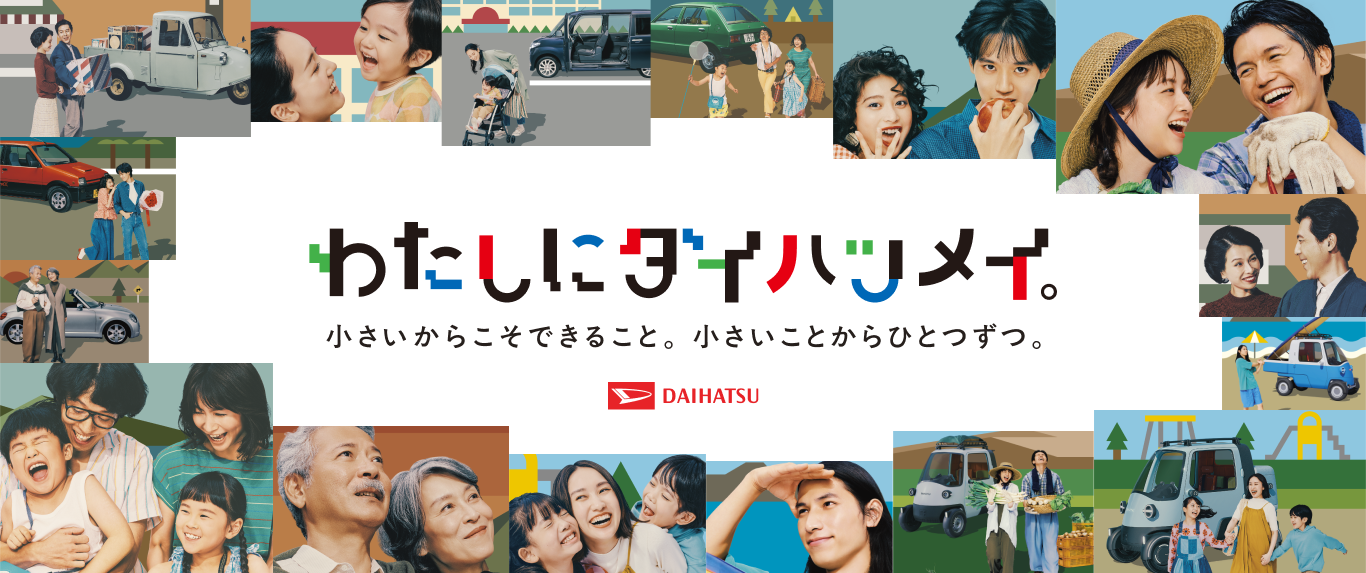 カーラインナップ ダイハツのクルマを見る 乗用車 福祉車両 商用車 特装車 歩行領域モビリティ 軽自動車 コペン 1,983,300円(税込)〜 ミラ イース 992,200円(税込)〜 タフト 1,419,000円(税込)〜 ムーヴ 1,358,500円(税込)〜 ムーヴ キャンバス 1,573,000円(税込)〜 タント 1,485,000円(税込)〜 タント ファンクロス 1,809,500円(税込)〜 小型乗用車/普通乗用車 ロッキー 1,761,100円(税込)〜 トール 1,742,400円(税込)〜 車いす移動車 タントスローパー 1,655,000円(消費税非課税)〜 アトレースローパー 2,160,000円(消費税非課税)〜 ハイゼットスローパー 1,760,000円(消費税非課税)〜 昇降シート車 タントウェルカムシートリフト 1,690,000円(消費税非課税)〜 トールシートリフト 1,914,000円(消費税非課税)〜 回転シート車 タントウェルカムターンシート 1,535,000円(消費税非課税)〜 軽商用車 アトレー 1,639,000円(税込)〜 ハイゼットトラック 1,028,500円(税込)〜 ハイゼットカーゴ 1,100,000円(税込)〜 小型商用車 グランマックス 2,068,000円(税込)〜 ダンプシリーズ 多目的ダンプ 1,639,000円(税込)〜 ローダンプ 1,512,500円(税込)〜 土砂ダンプ 1,633,500円(税込)〜 清掃ダンプ 1,666,500円(税込)〜 リフトシリーズ 垂直式テールリフト 1,567,500円(税込)〜 コンパクトテールリフト 1,413,500円(税込)〜 保冷・冷凍シリーズ カラーアルミ中温冷凍車 2,002,000円(税込)〜 カラーアルミ保冷車 1,622,500円(税込)〜 FRP中温冷凍車 2,134,000円(税込)〜 FRP保冷車 1,837,000円(税込)〜 カラーアルミ低温冷凍車 2,458,500円(税込)〜 配送シリーズ アトレーデッキバン 2,002,000円(税込)〜 デッキバン 1,375,000円(税込)〜 パネルバン 1,386,000円(税込)〜 カーゴ2シーター/カーゴ2シータークリーン 1,133,000円(税込)〜 カーゴセパレート2シーター 1,320,000円(税込)〜 歩行領域モビリティ e-SNEAKER 418,000円(消費税非課税) すべてのラインナップから探す 店舗検索 お近くのダイハツ店舗を 検索できます。 試乗車・展示車検索 どこの店舗に試乗したい・見たい車 があるかを検索できます。 カタログ請求 ご希望のカタログを3車種まで 請求できます。 オンライン見積り サイト上で見積りを シミュレーションできます。 購入相談 サイトから販売会社に購入に 関する相談ができます。 スマパケ ひとつにまとめて、あなたの カーライフにおトクと安心を。 ニュース・トピックス ダイハツの様々な情報をお届け 2025.10.14 イベント JAPAN MOBILITY SHOW 2025 2025.10.13 スペシャルサイト 「わたしにダイハツメイ。」スペシャルサイト公開! 2025.10.13 CM ブランド広告TVCM「わたしにダイハツメイ」篇 2025.10.08 その他 カクカクシカジカファンサイト更新 2025.10.03 イベント 現行型コペン生産終了とイベント開催について 2025.10.01 キャンペーン DAIHATSU TANTO 300万台感謝祭り 2025.10.01 キャンペーン 用品7万円プレゼントキャンペーン キャンペーン期間 2025/10/01〜2025/12/31 2025.09.30 CM タント ファンクロス TVCM「ぜんぶFUNだね」篇 ニュース・トピックスの一覧を見る