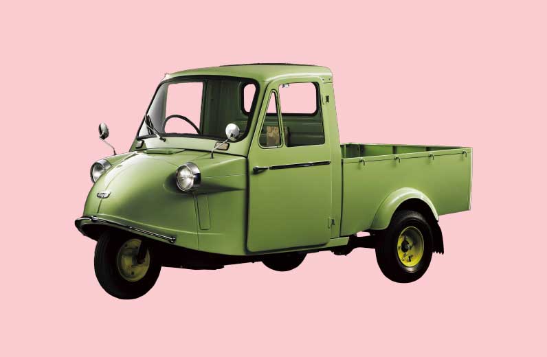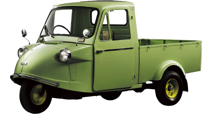 初代「ミゼット」は、三輪の小さなボディで路地を走り、