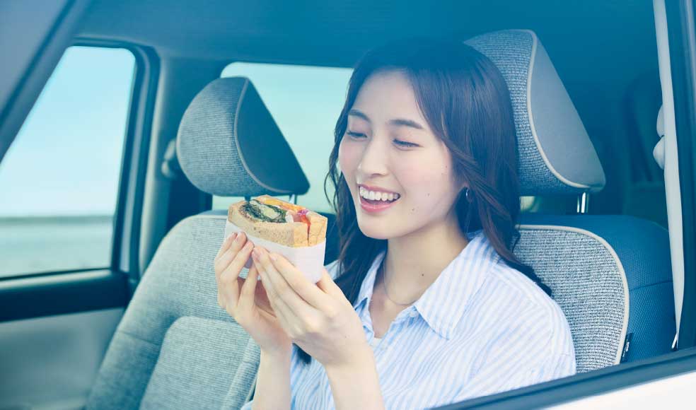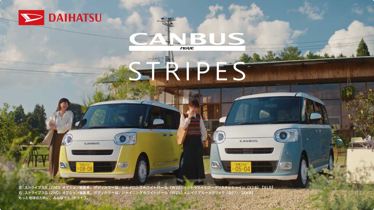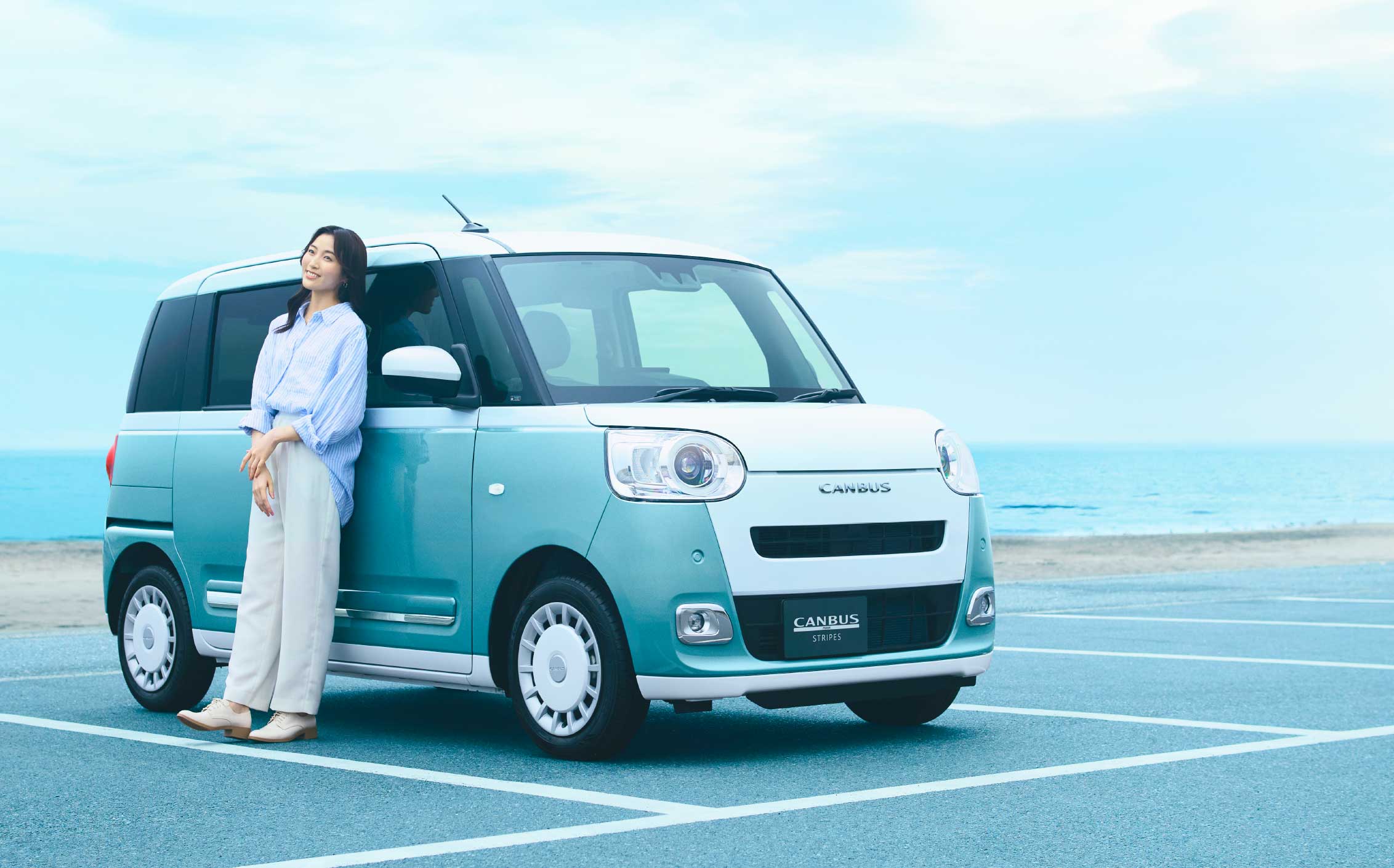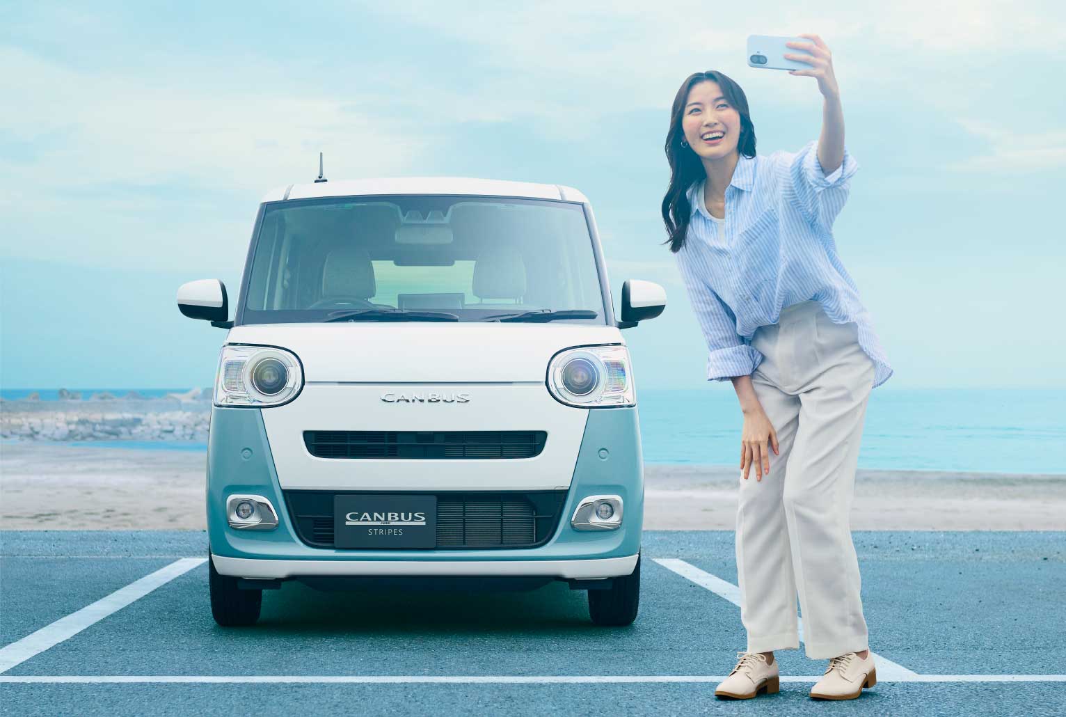 ※1:ストライプスG(2WD)。ボディカラーは、シャイニングホワイトパール〈W25〉×レイクブルーメタリック〈B87〉【XK6】。9インチスマホ連携ディスプレイオーディオはメーカーオプション。※特別な許可の元で撮影しており、サイト上の演出を含みます。
