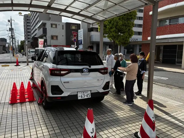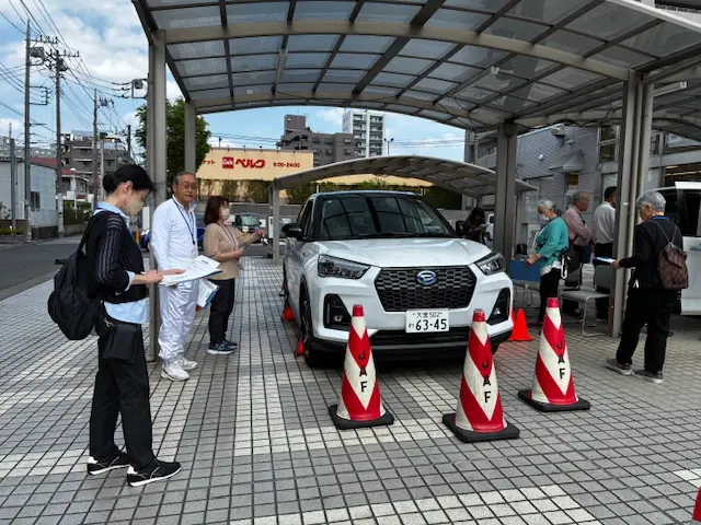 また、日本自動車連盟(JAF)様のご協力のもと、正しい運転姿勢や死角の確認を実施。