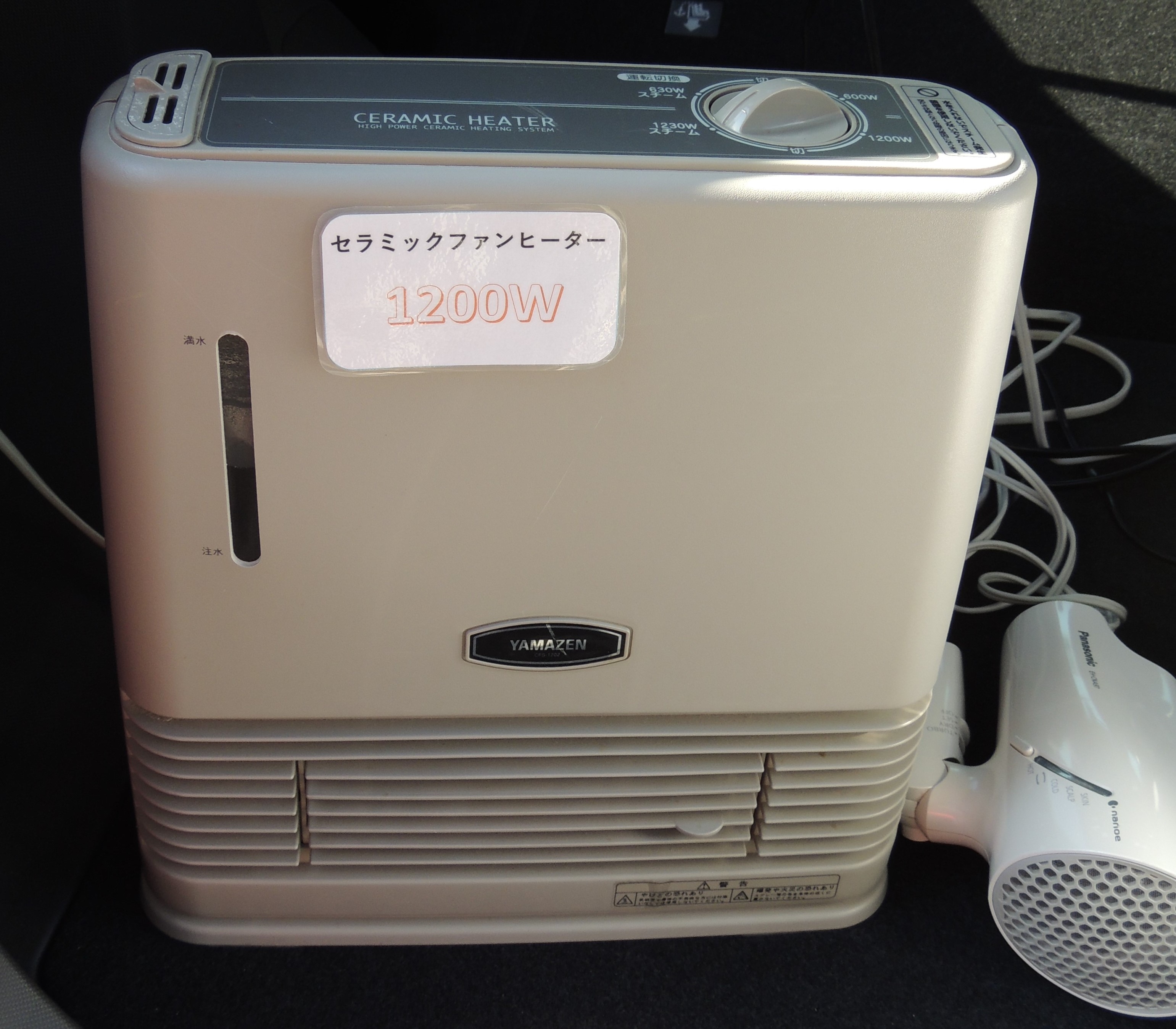 他にもヘアドライヤ(1200W)、サーキュレーター(50W)の使用を行い