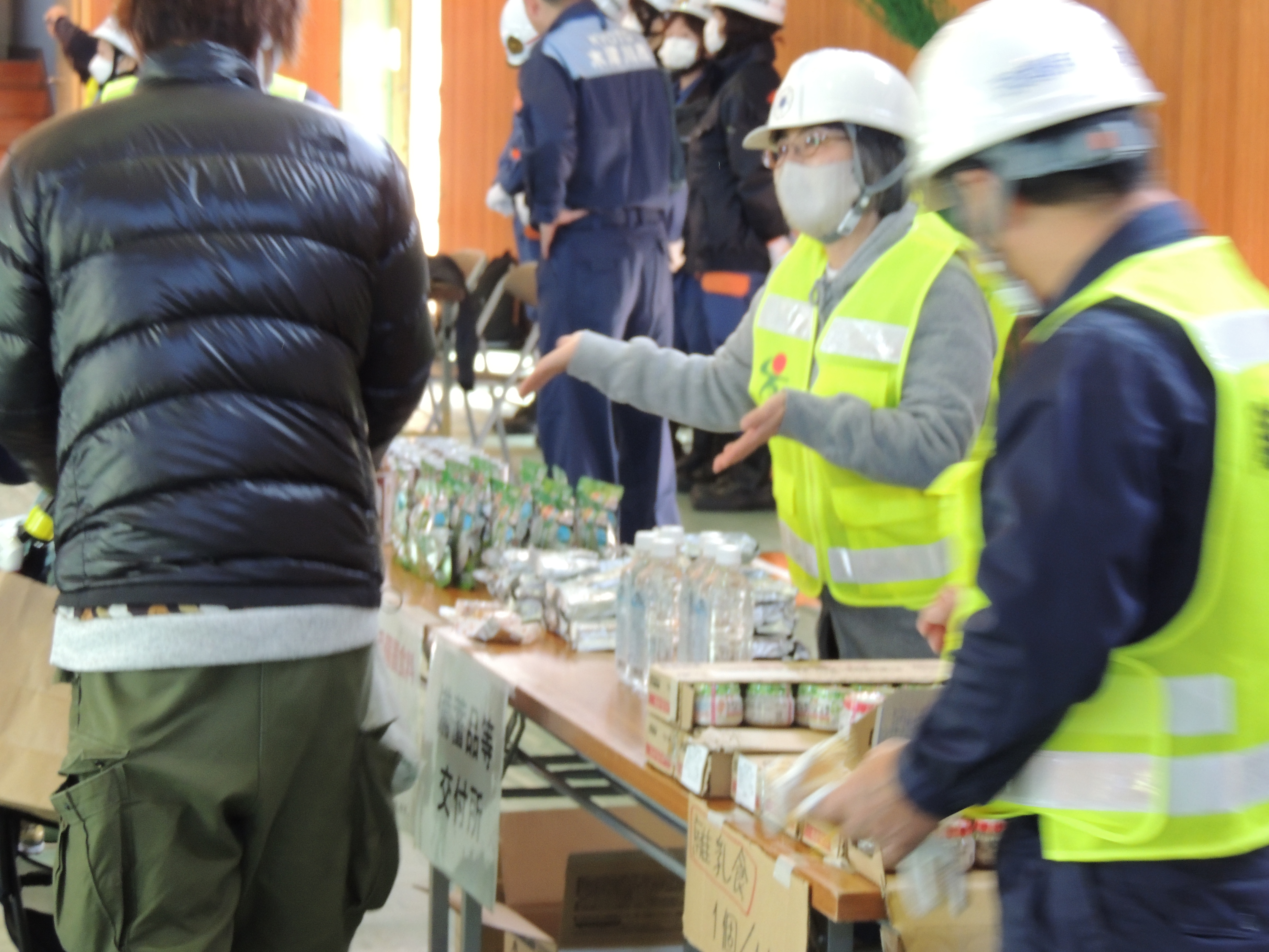 非常食の配布の一コマ 配る側の訓練にもなります