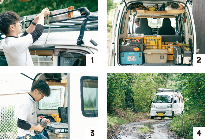 大きな荷室には工事現場で使う道具を詰め込んでいます。この1台さえあれば、たいていの作業ができる状態にしてあるので、言ってみれば「動く道具箱」。車検のときなど、相棒がいないと、仕事がはかどらなくて困るんです。