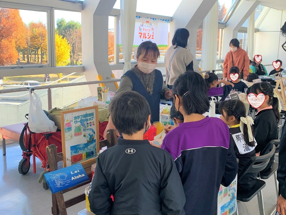 大会名にフェスティバルが入ってる・・・ということはフェスティバル感を出さないと!」ということでマルシェでお世話になっている作家さんにお願いし、参加の小学生を対象にミニイベントとしてワークショップを開催することに致しました。