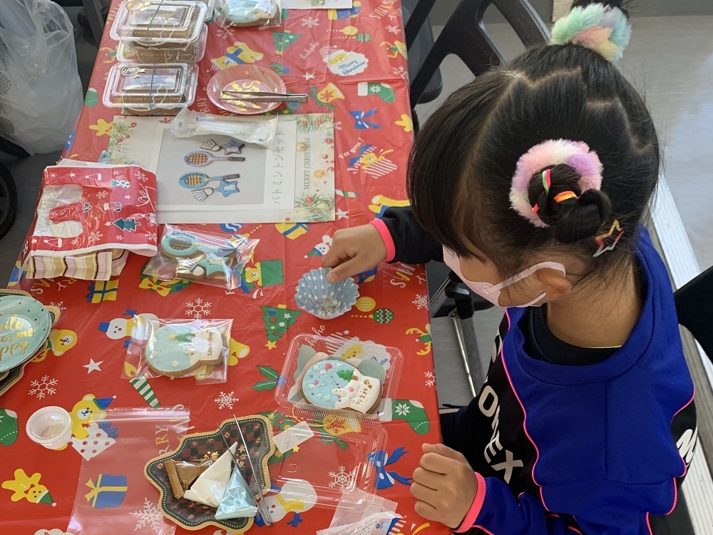 「どれにするー?悩むーっっ。」とお友達同士で目をキラキラさせて選んでいる姿や「試合が終わったら必ず来るから」とチケットを渡して予約する子がいたり、試合で負けて泣きながら歩いていた子が数分後に笑顔で来てくれたり、かと思うと「試合やっと終わったー!」とチケットを持って走ってくる子など、試合の時とは違う小学生らしい一面も見られて、とても楽しい1日となりました。