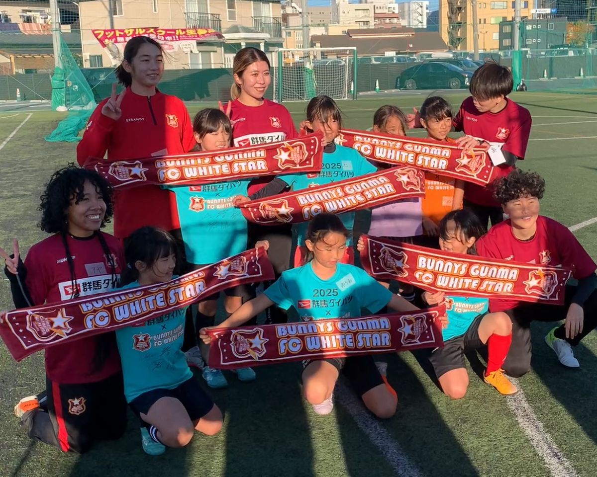 今回も、なでしこリーグ2部で活躍する バニーズ群馬FCホワイトスター の選手のみなさんが特別コーチとして参加。明るい声が飛び交う、にぎやかなクリニックになりました。