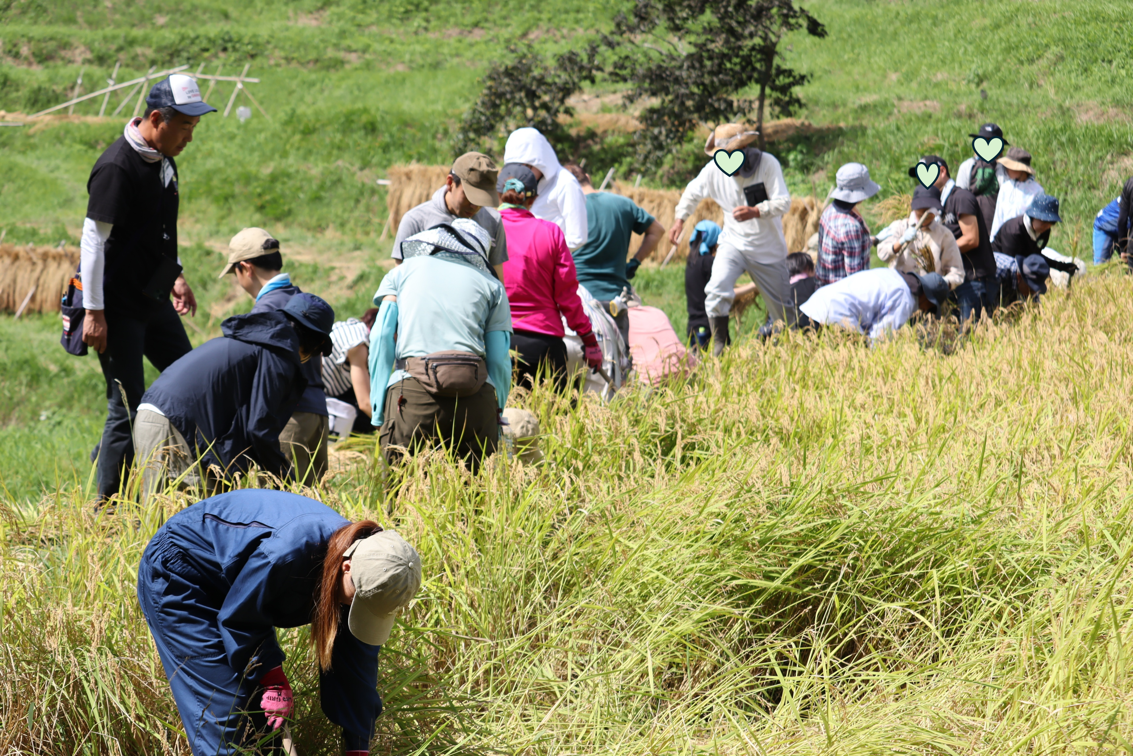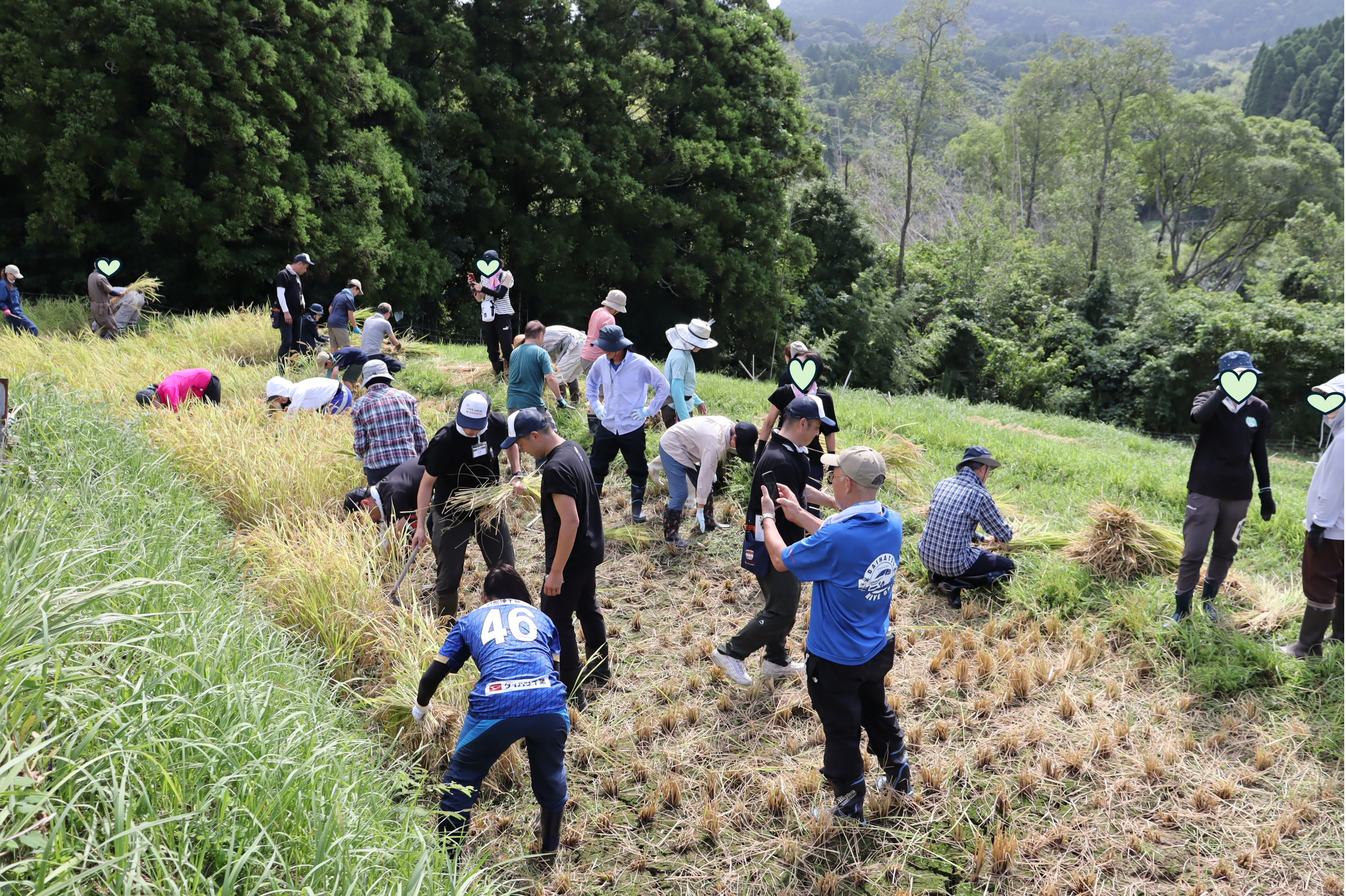 大山千枚田最後の稲刈りはダイハツ千葉!!