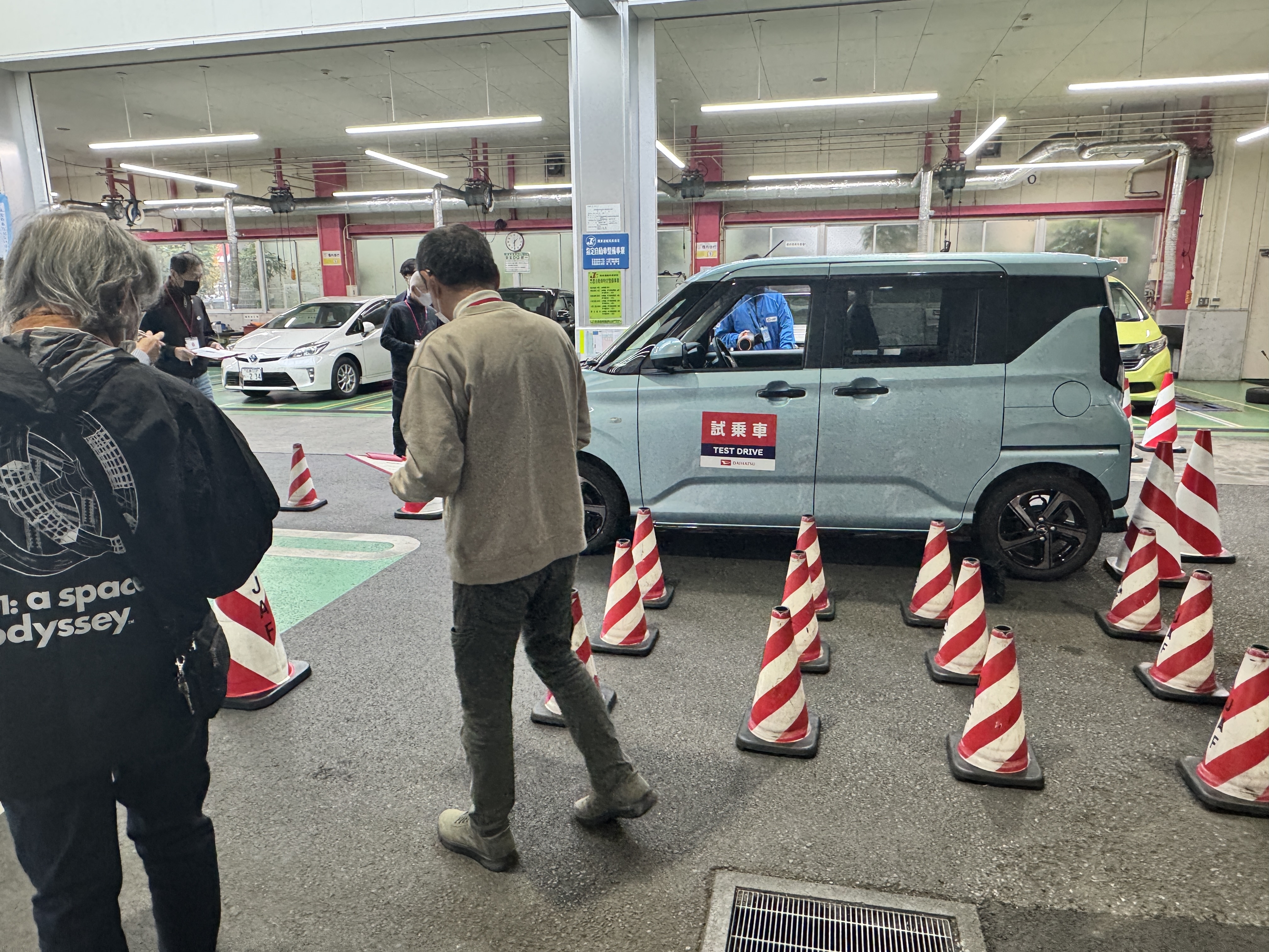 屋外では、JAF東京都支部様による運転姿勢と死角の確認、ダイハツ東京による衝突回避支援システム(スマアシ)の体験、さらにe-SNEAKERの試乗体験を行いました。
