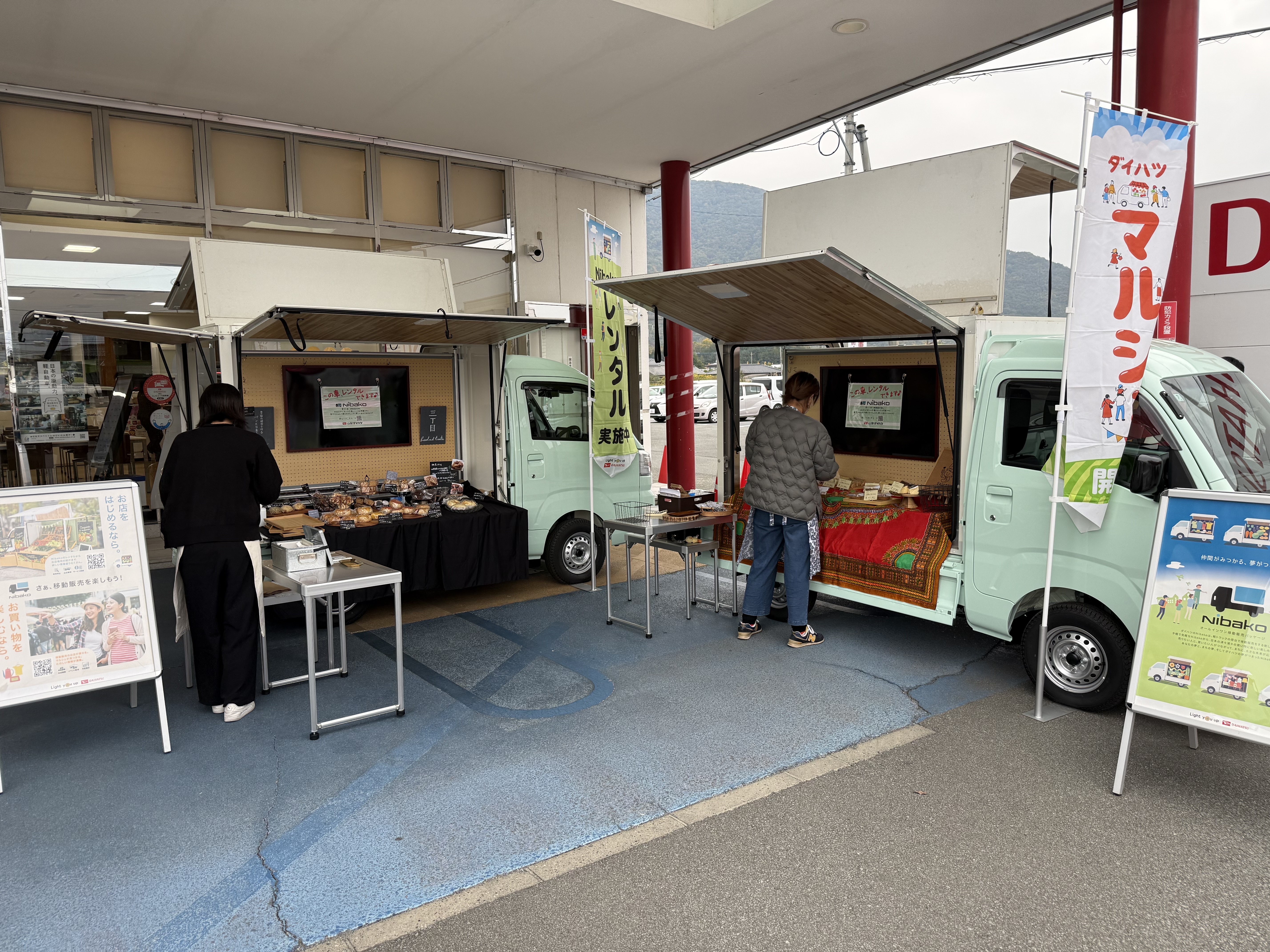 弊社はダイハツの移動販売車『Nibako』を出店者様にお貸出し、販売をサポートいたしました。