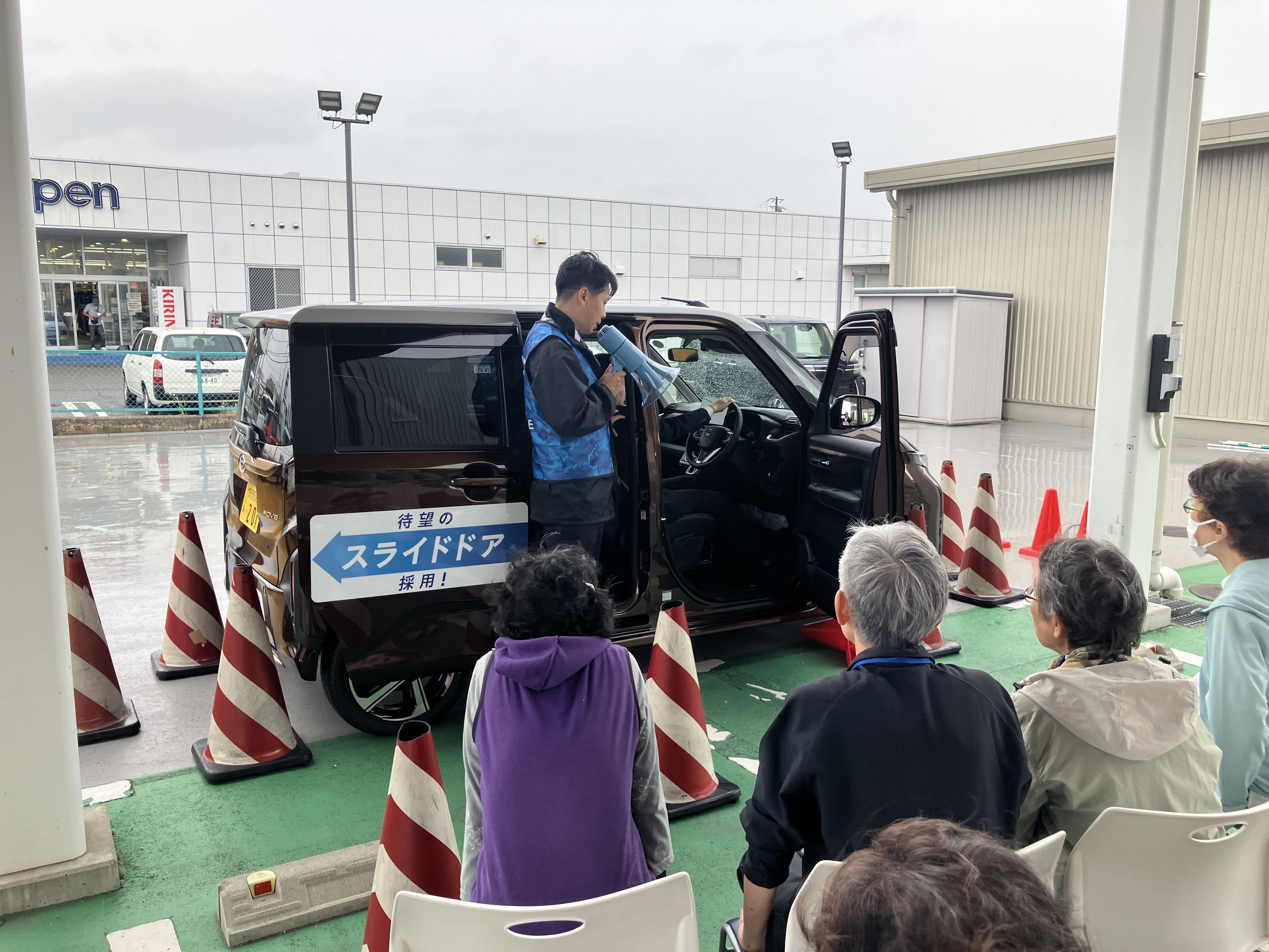 JAFによる安全運転講座では、正しい運転姿勢や死角確認など、安全運転に役立つポイントを実際に体験しながら学んでいただきました。