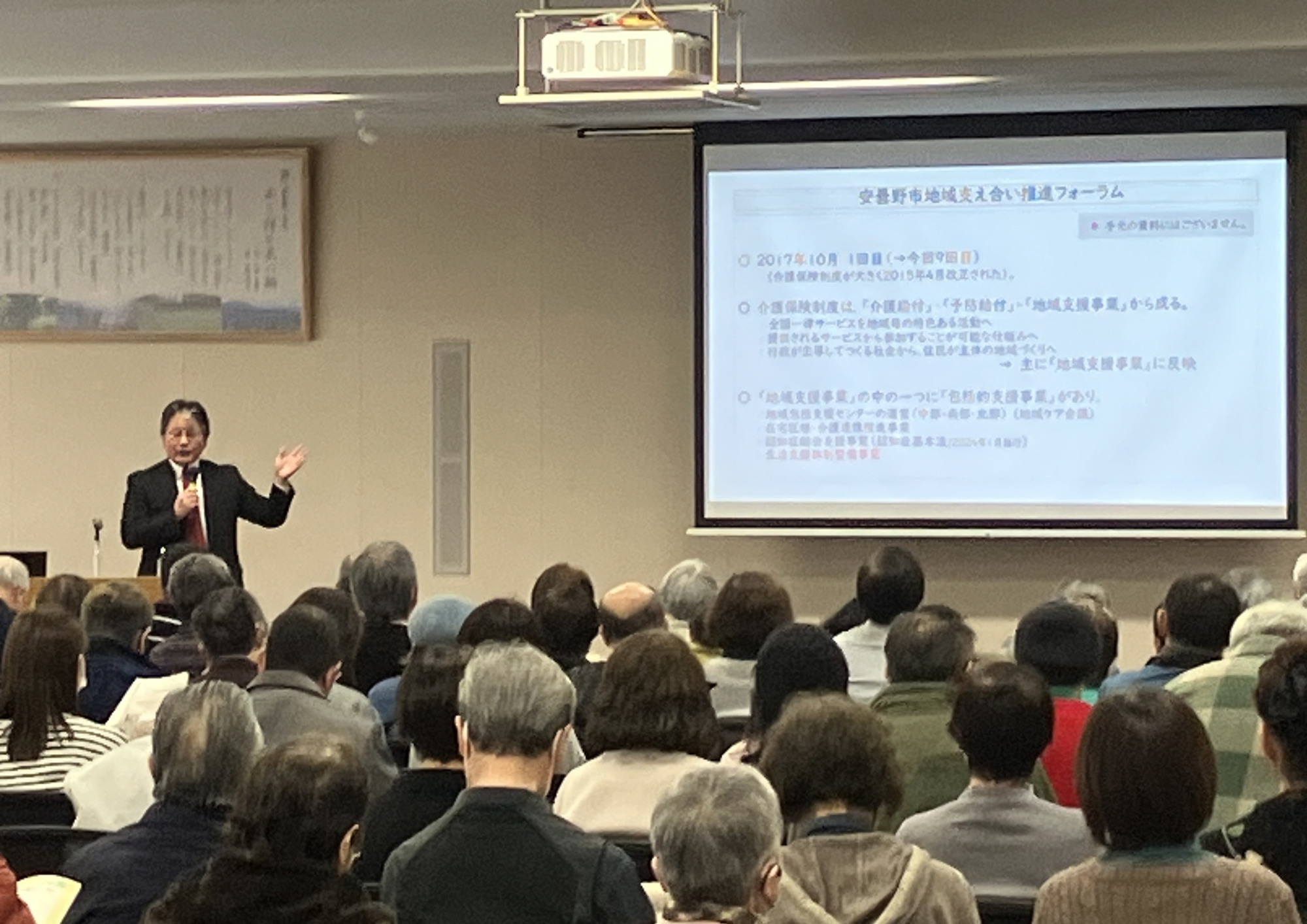 本フォーラムは、高齢社会を見据え、地域で支え合うまちづくりを目的として安曇野市が主催したものです。