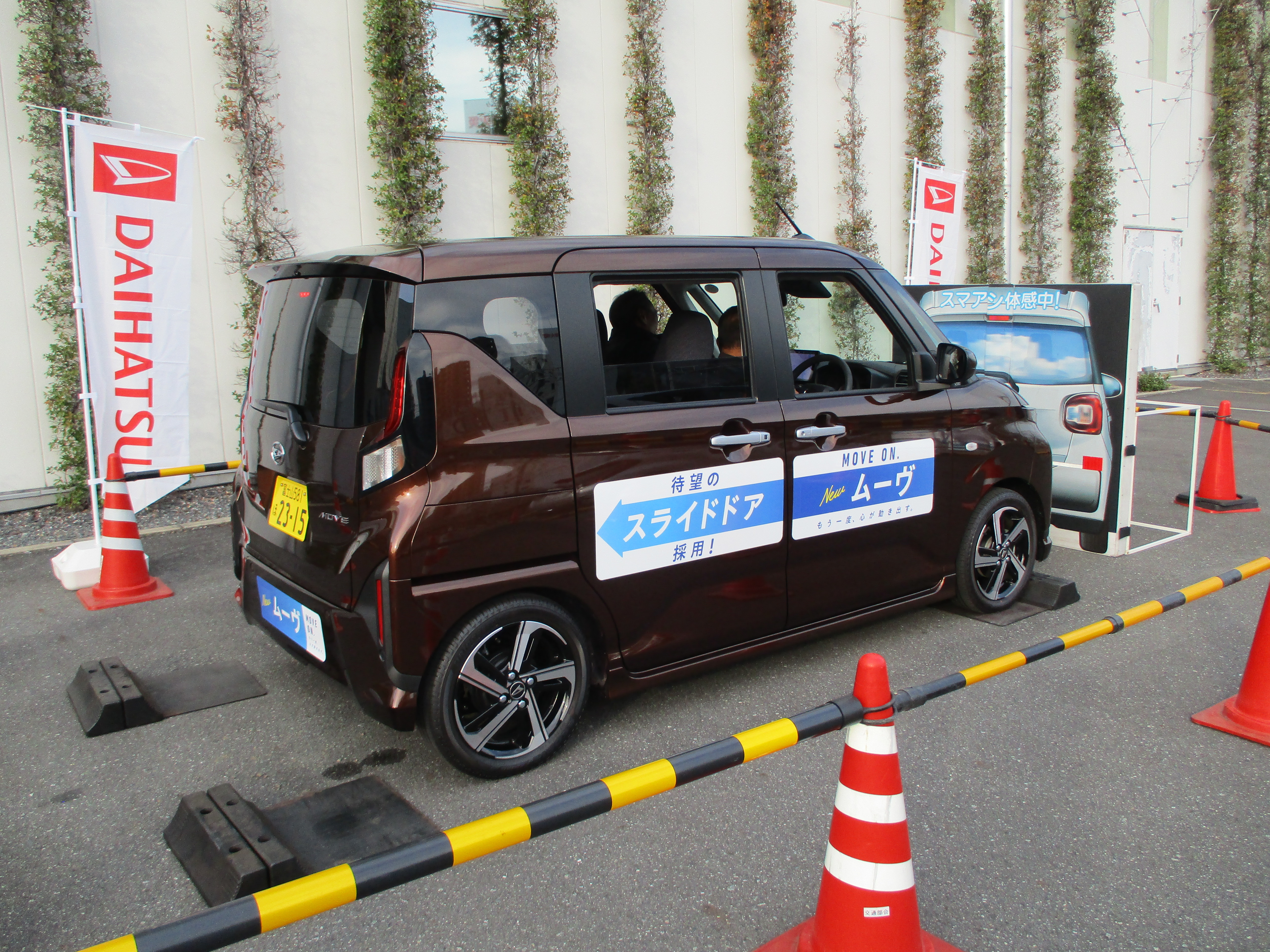 ダイハツ沼津は新型MOVEによるスマアシ体験を実施し、衝突回避支援機能の「誤発進抑制機能」を体感していただきました。