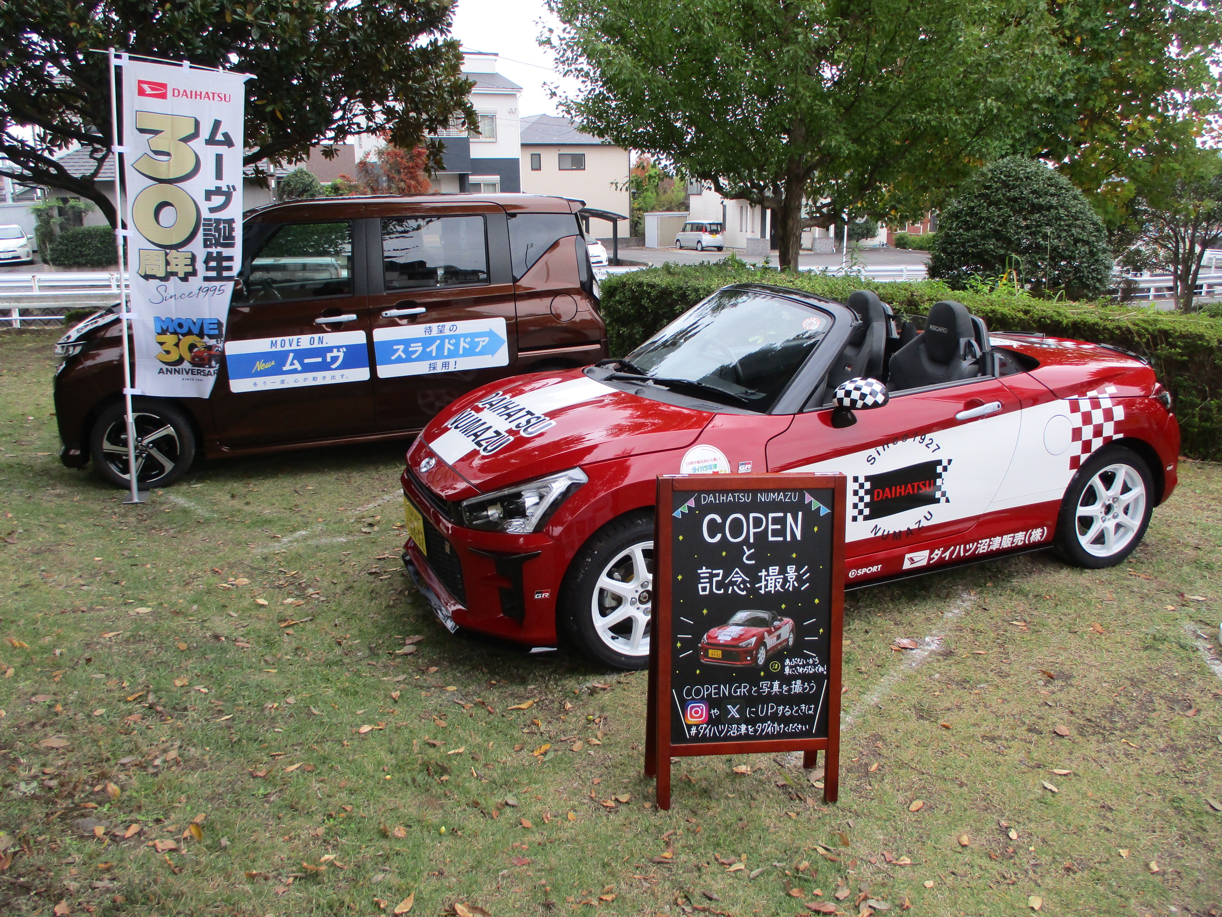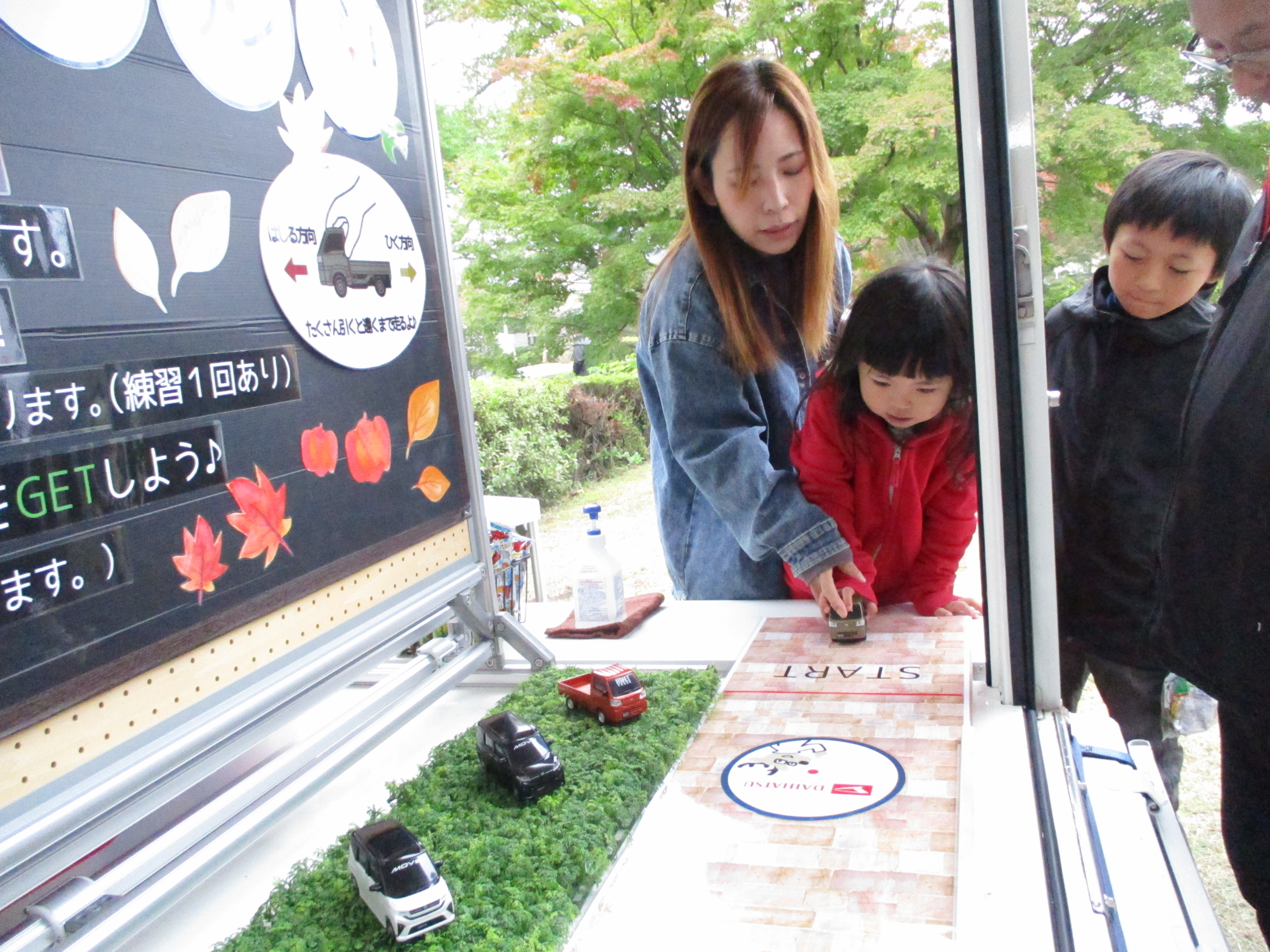 ダイハツ沼津 富士宮店ブースでは「新型MOVE」と「オリジナルラッピングGRコペン」の車両展示、移動販売車「Nibako」でお子様向けイベント『Nibako DE カーリング』ゲームを行いました。