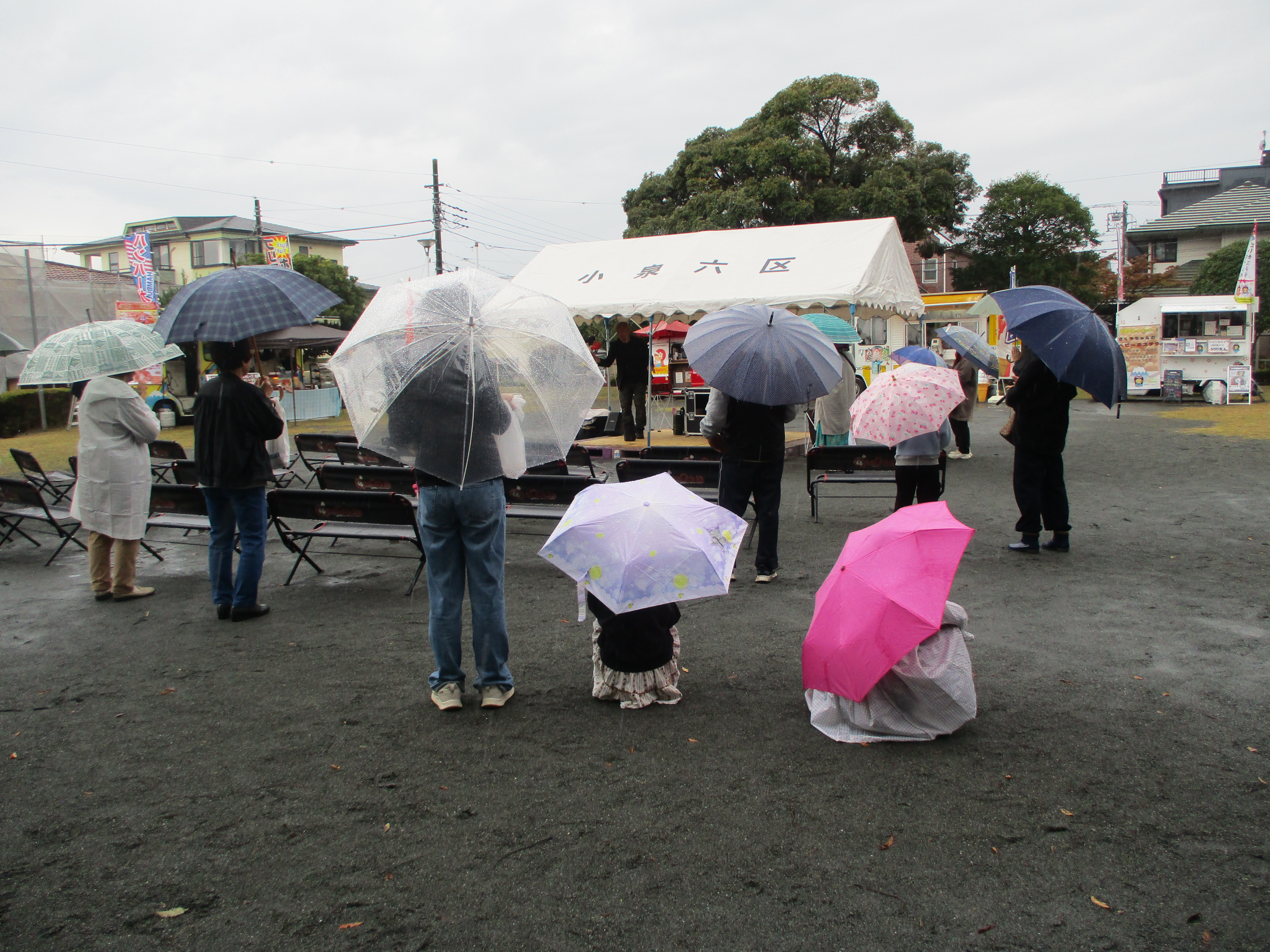 当日曇り空スタートのおまつりは、我慢しきれなかった雨が開始30分で降り出しました。