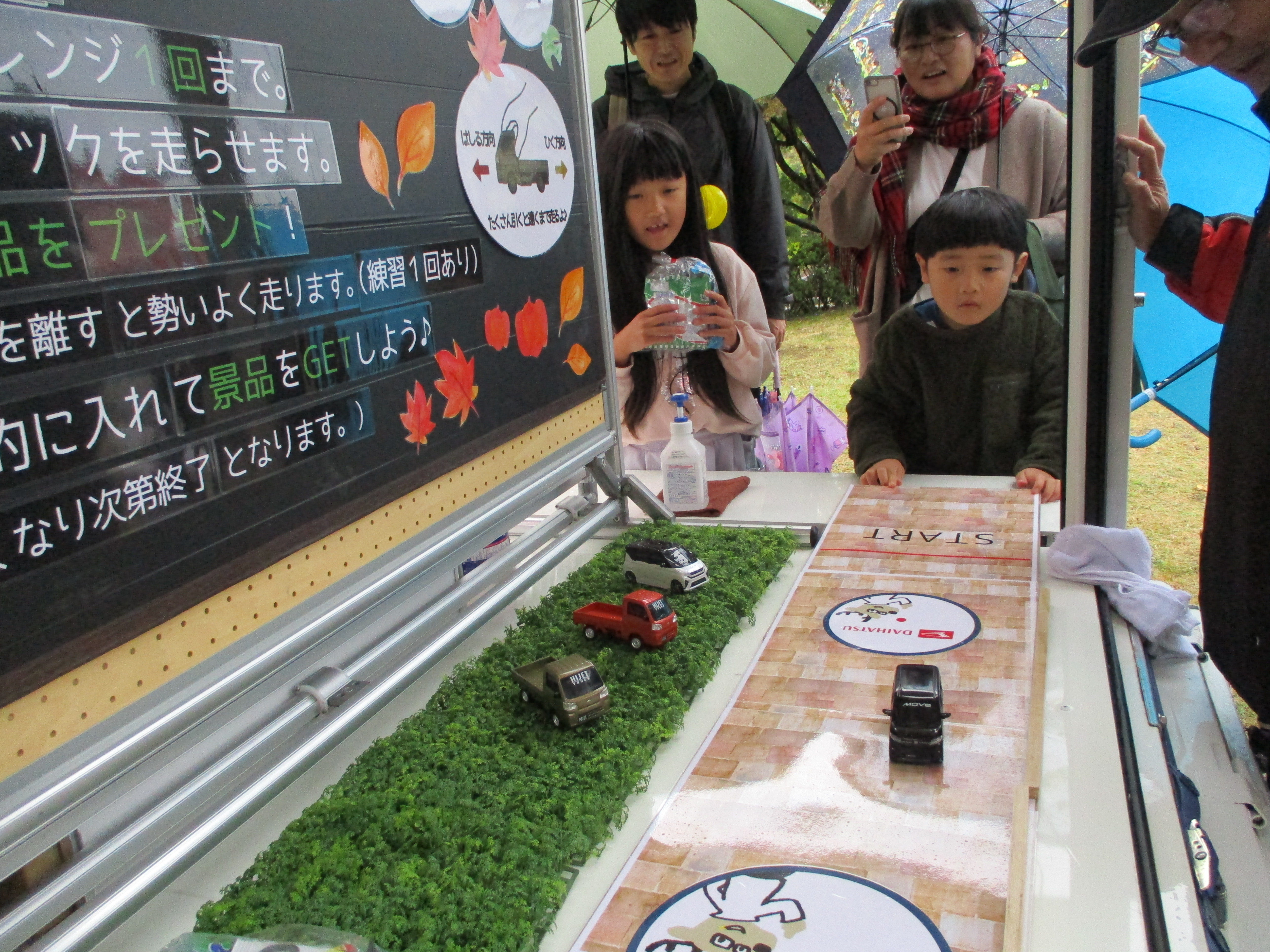 Nibako DE カーリングはプルバックカーを的に入れるゲームです。お子さまの真剣な姿に親御さんの応援にも力が入っていました。的に入った瞬間の皆さんで喜ばれている姿が微笑ましかったです。雨の中ご参加いただいた皆さま、ありがとうございました!