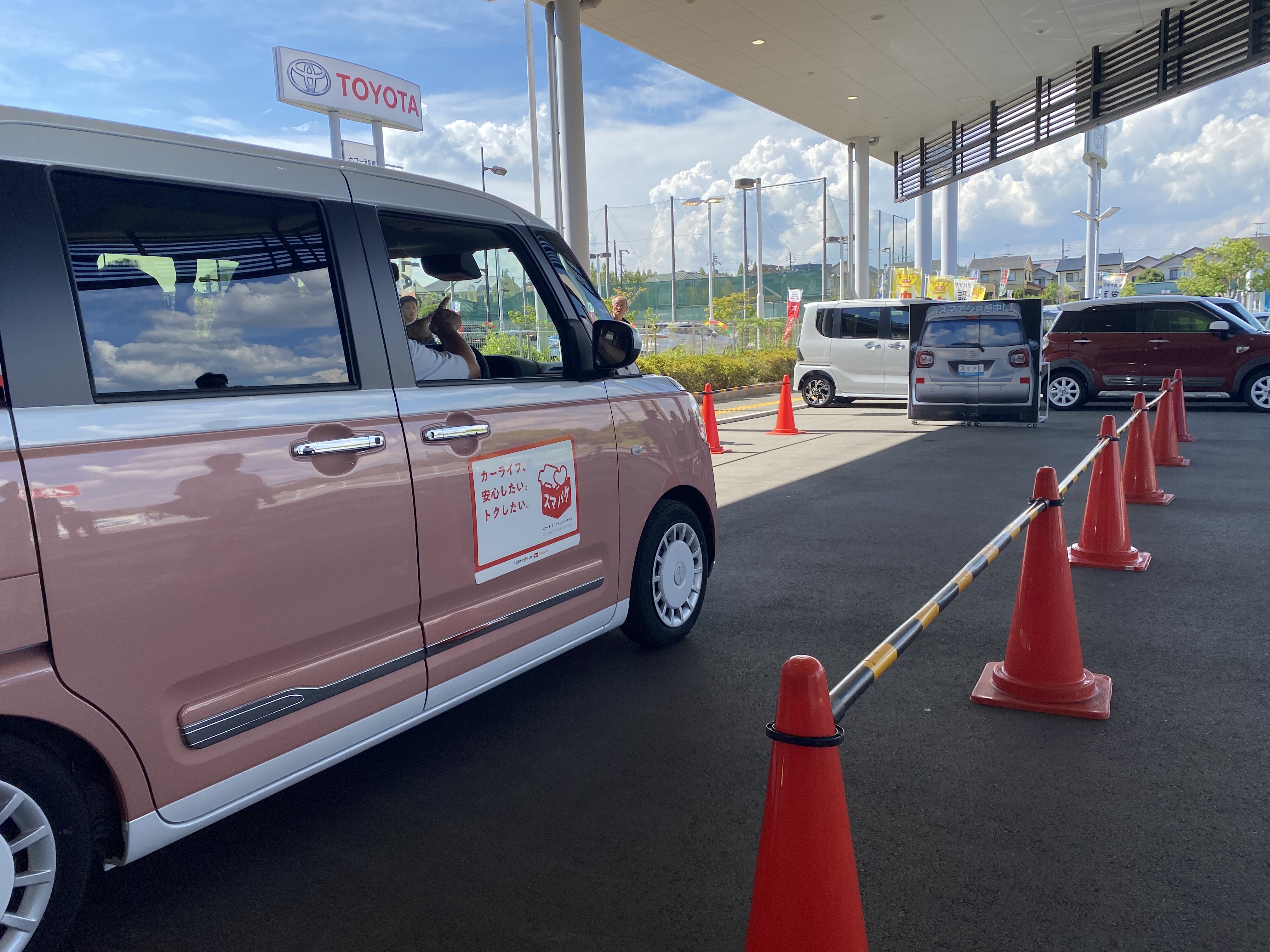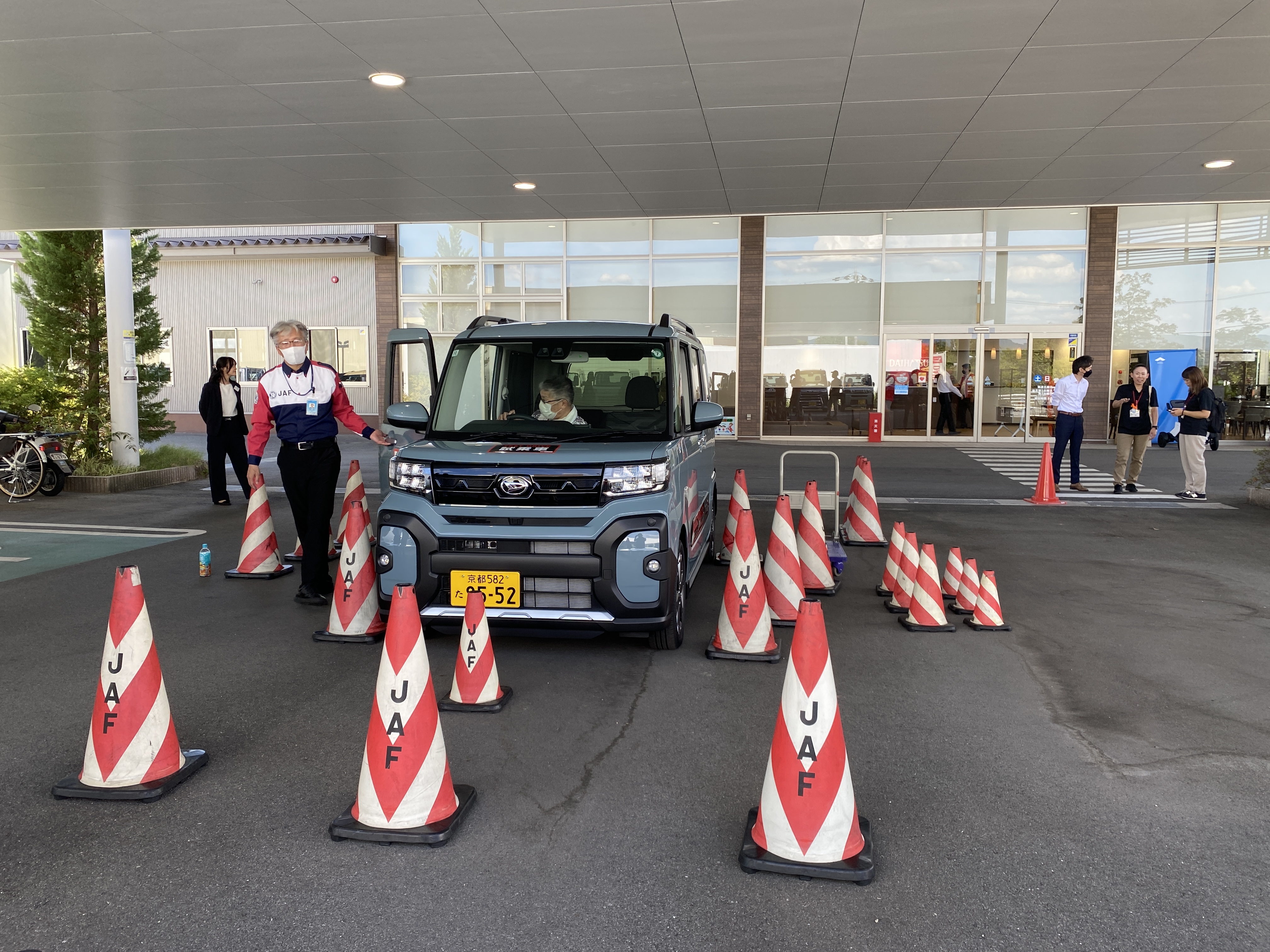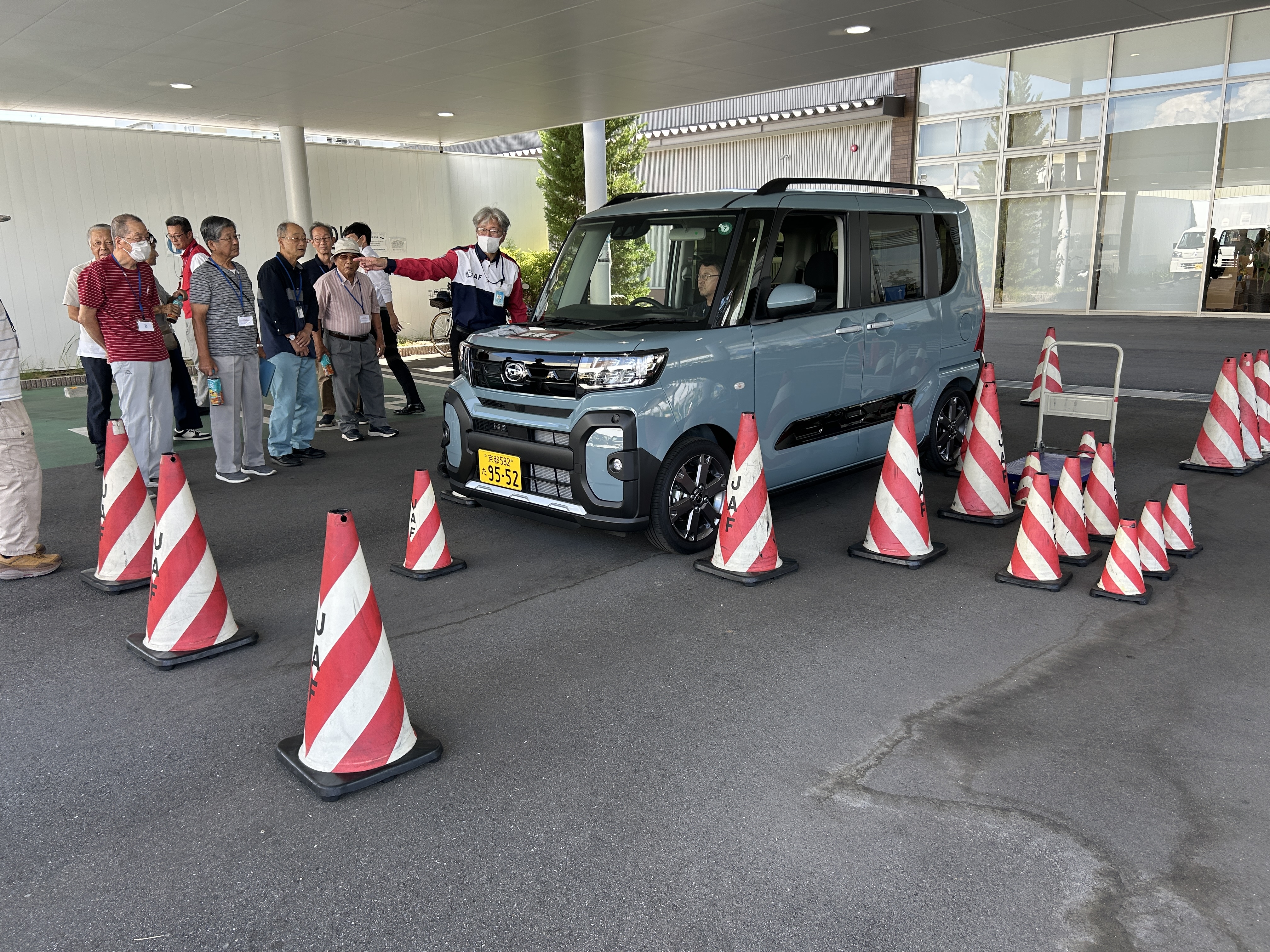 車外にたくさん設置されたパイロンをまずは、車の周りをぐるりと歩きながら確認いただきます。