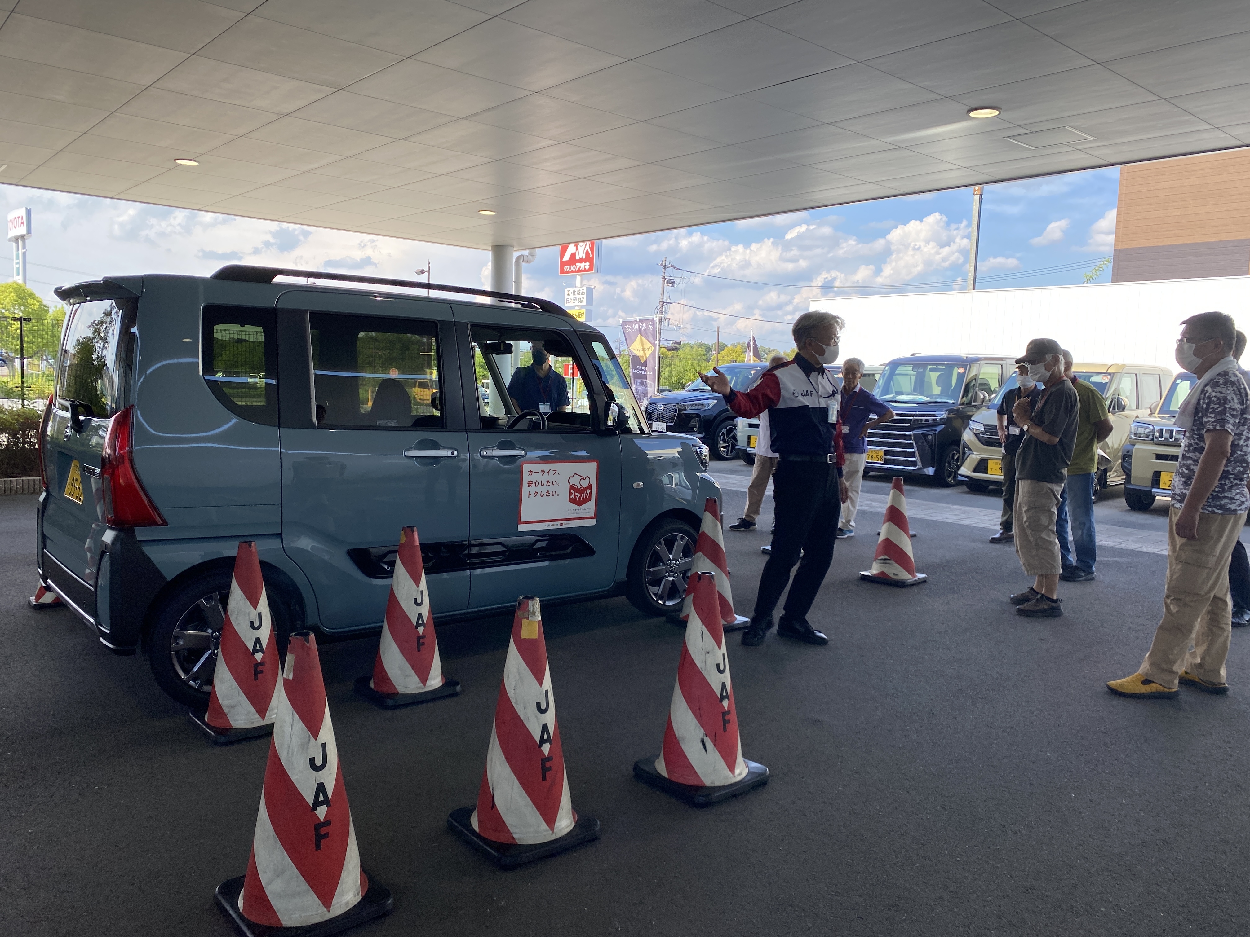 健康講習では、正しく老いを理解し楽しく向き合うプログラムとなっており、安全講習では、車の死角の把握やスマートアシスト(自動ブレーキ)の体感を行いました。