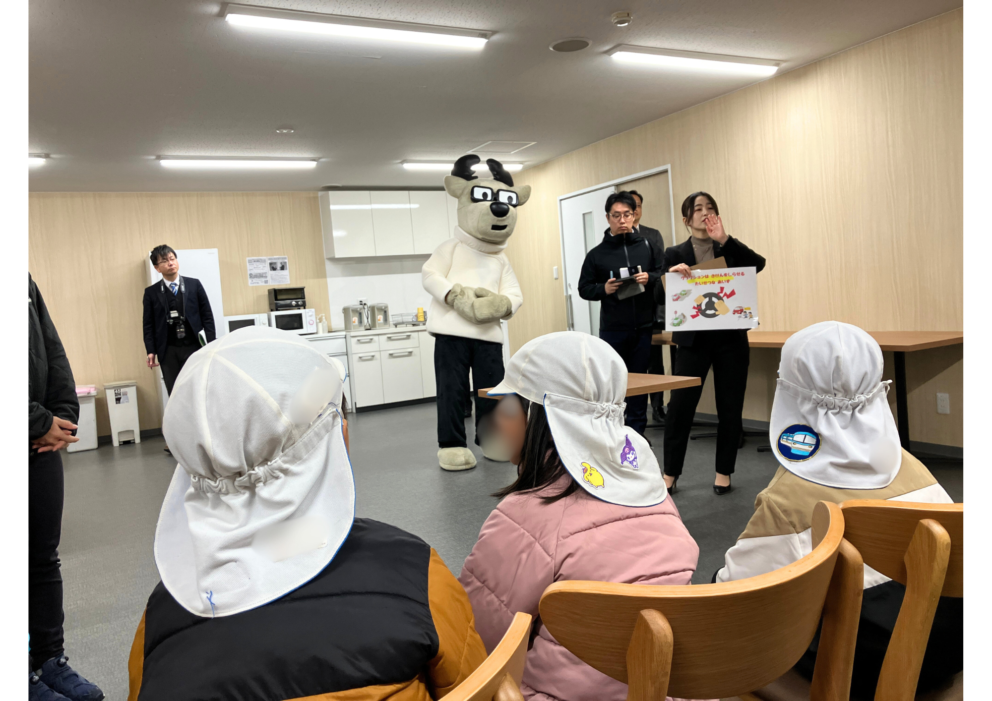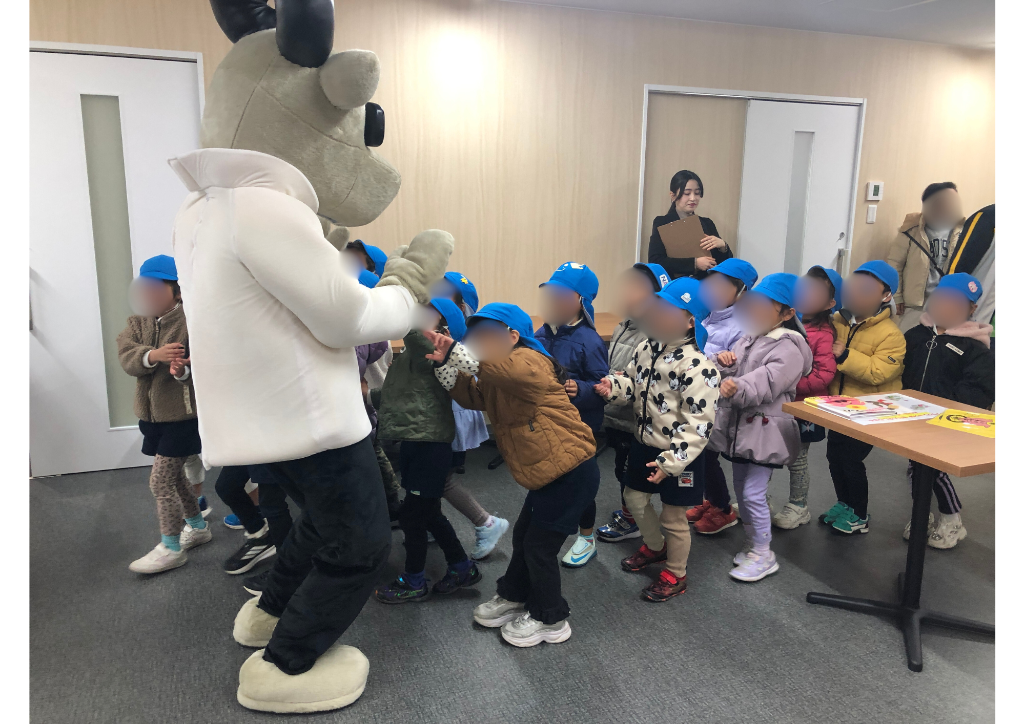 寒くても朝から元気いっぱいの子どもたち!出迎えてくれたカクシカに大興奮!