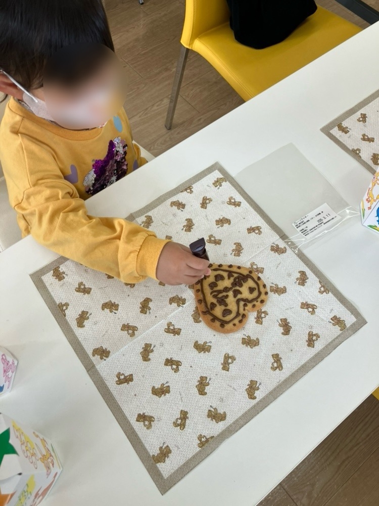ヒロコナ様のクッキーにチョコペンで家族に向けた感謝のメッセージを書いてオリジナルクッキーを作るワークショップを行いました!