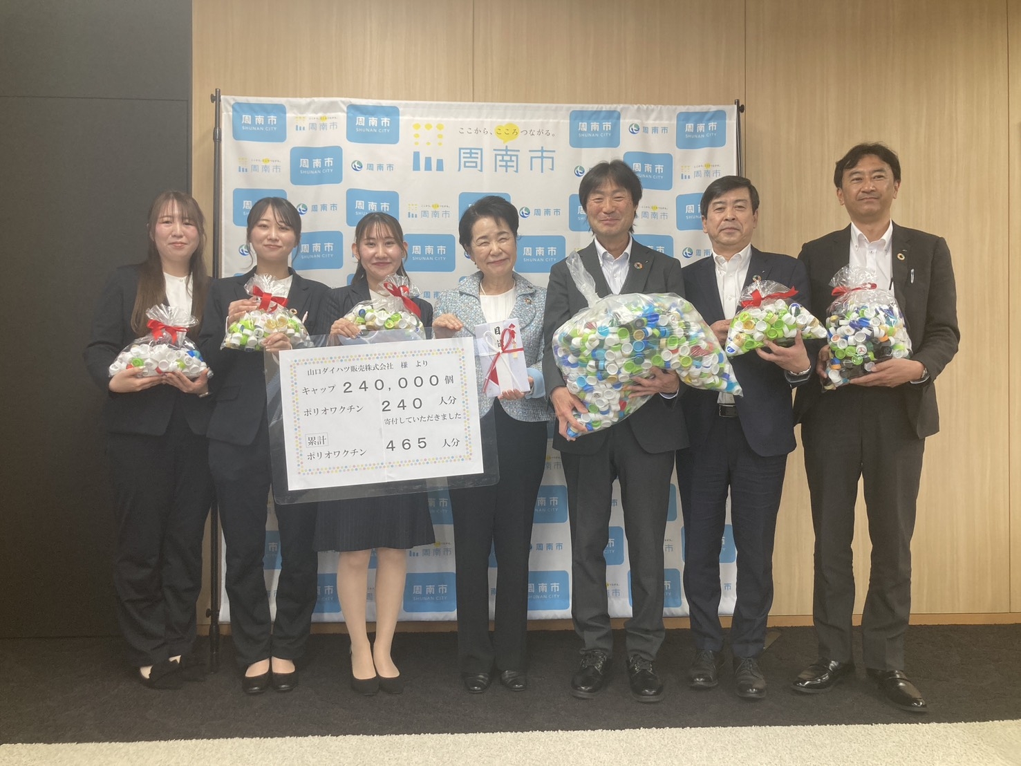周南市への寄贈は、今回で2回目で累計で約930㎏、約465人分のワクチンになりました!