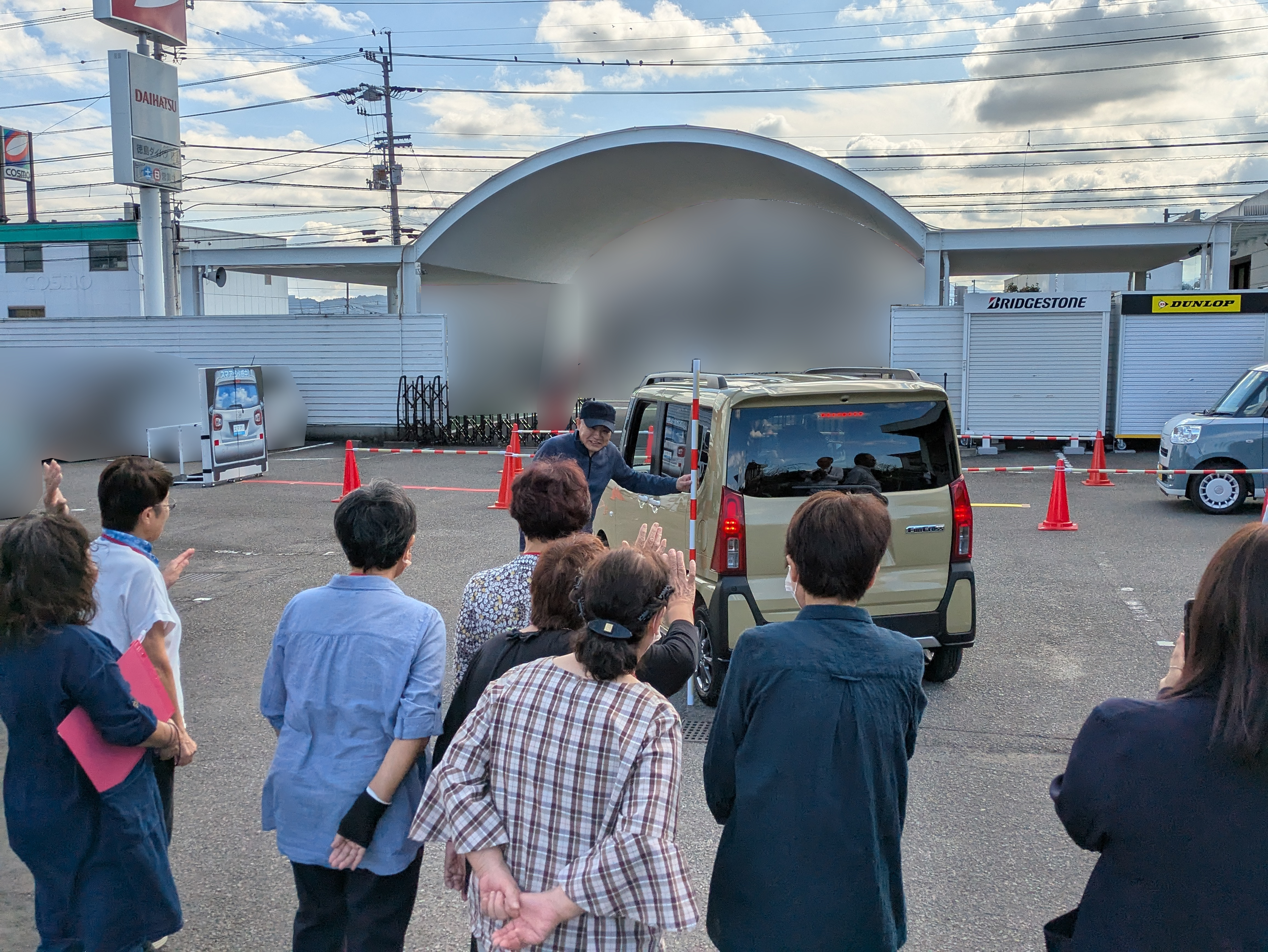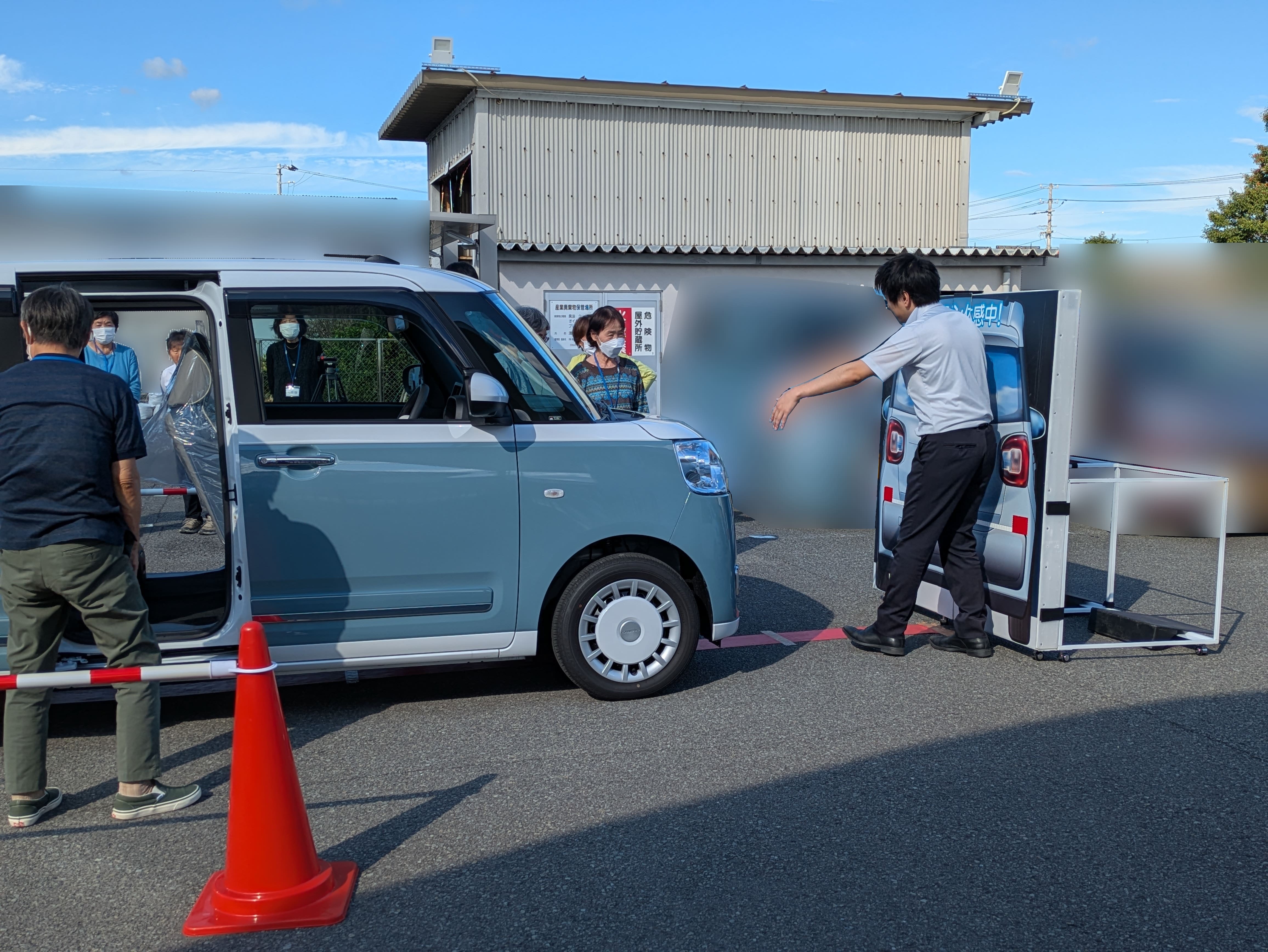 そして、ダイハツによるサポカー体験を実施し、スタッフが運転する車に乗車いただき、衝突回避支援ブレーキ機能をご体感いただきました!
