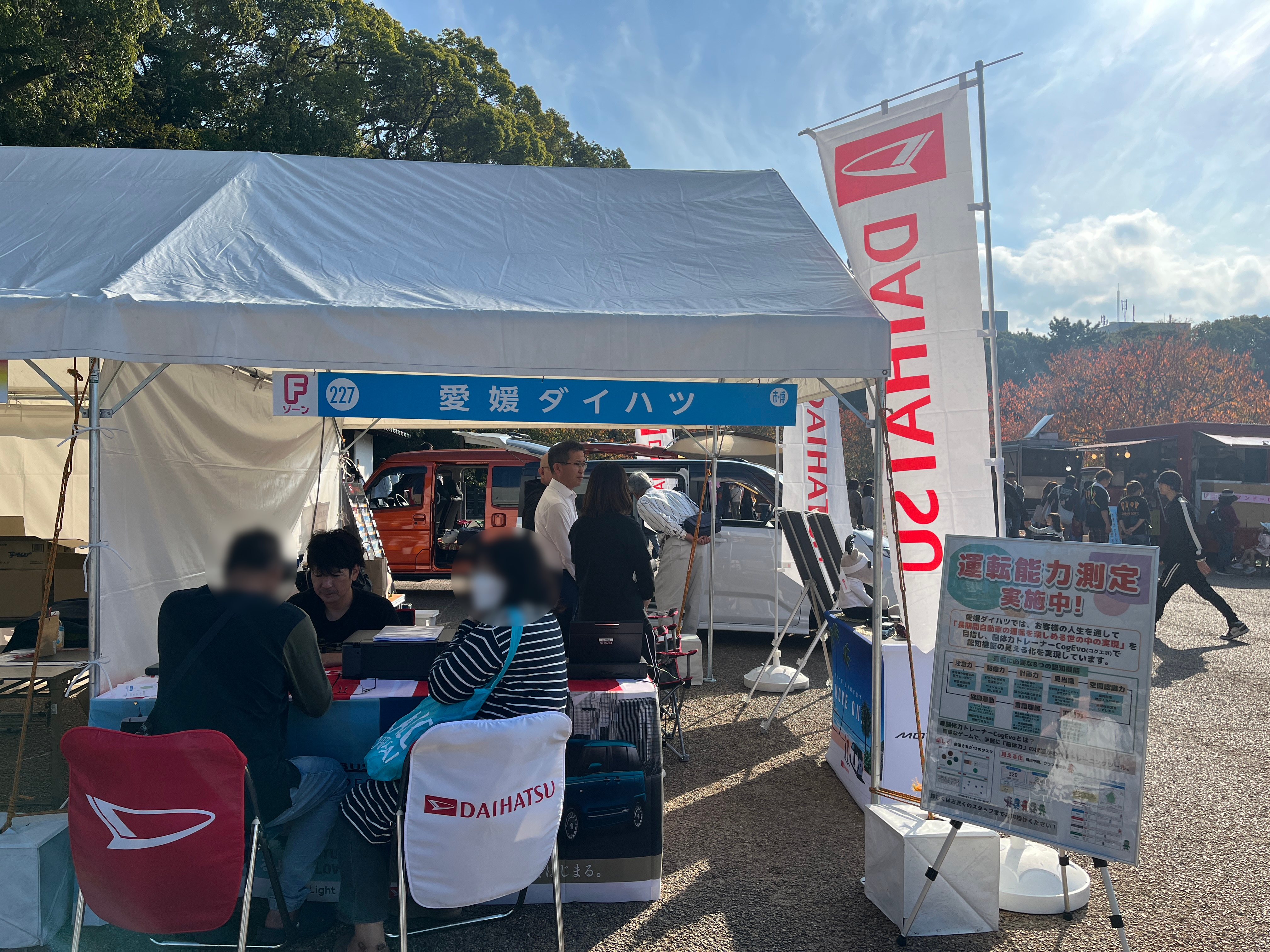 愛媛ダイハツブースのテント内では、「運転能力測定」を実施しました。