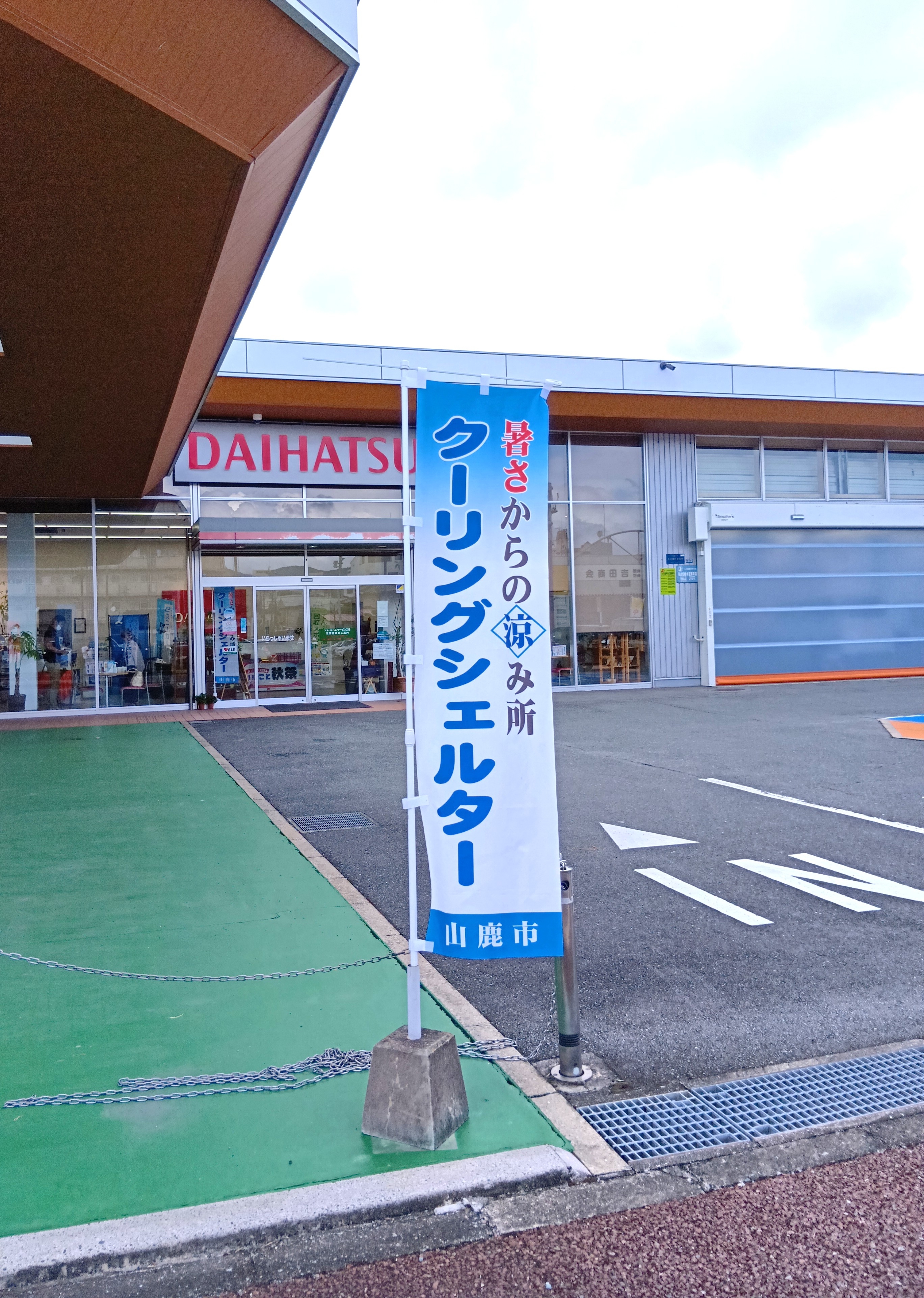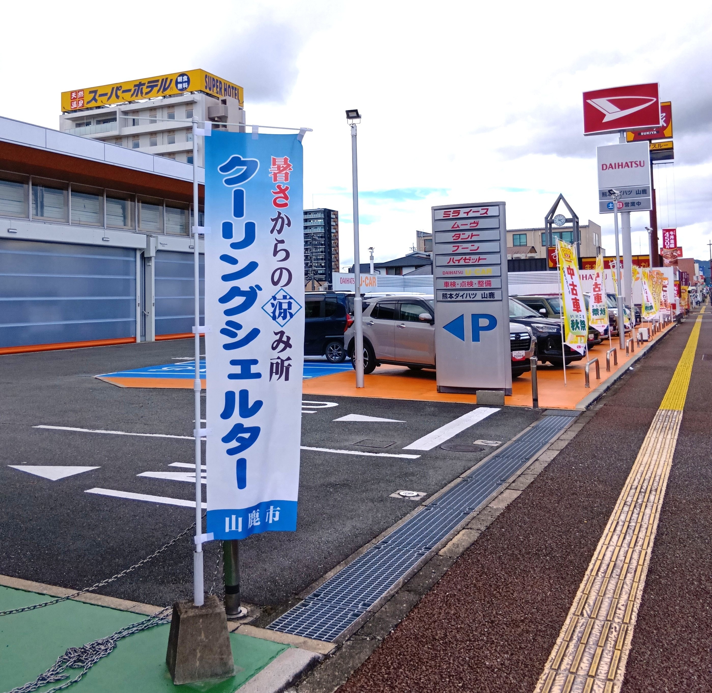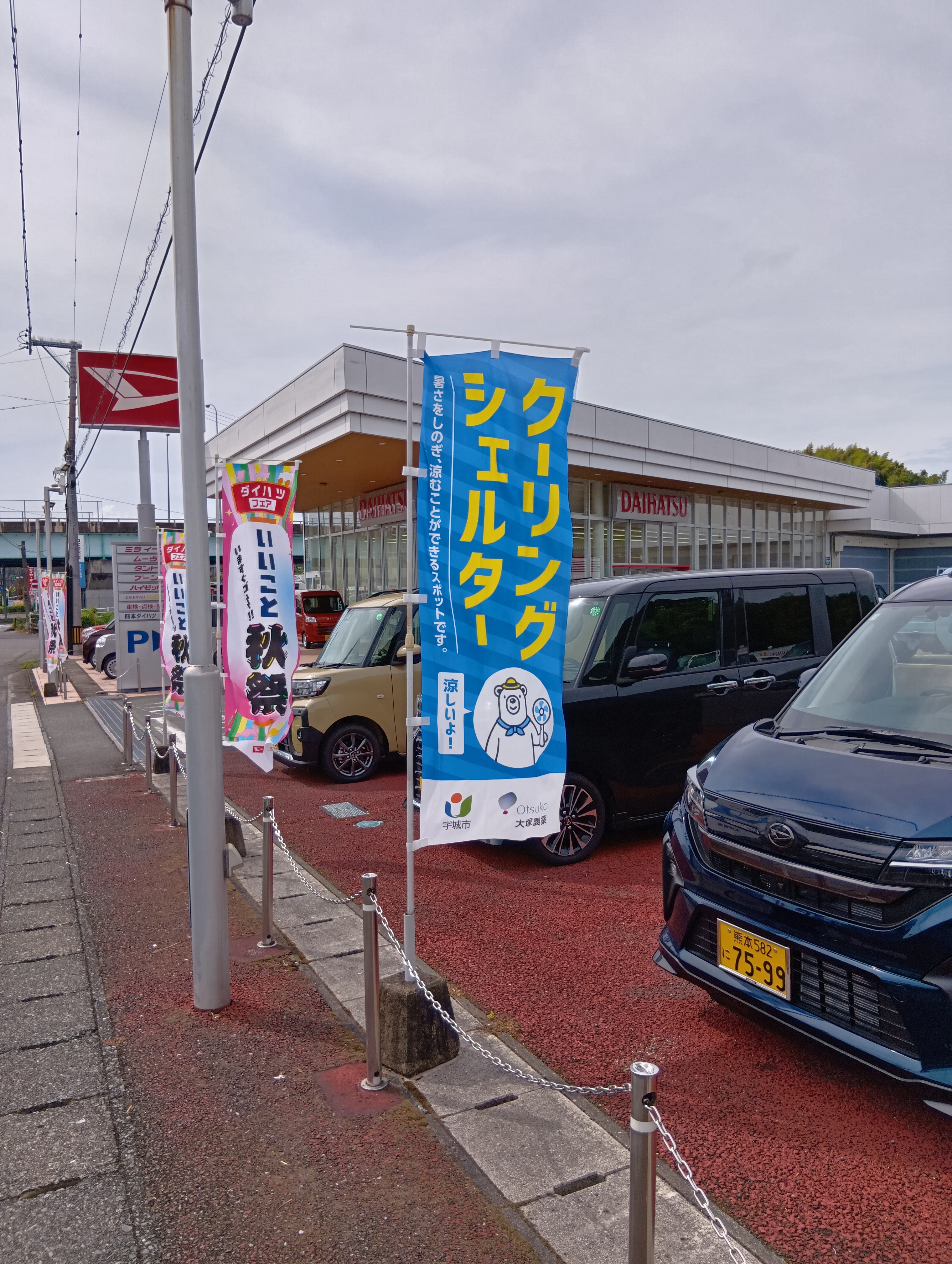 市町村が、冷房設備を有する等の要件を満たす施設を申請に基づいてクーリングシェルター(指定暑熱避難施設)として指定したもので、市民の方々が暑さをしのぐために一時的に急速できる施設のことです。熊本ダイハツ販売は県内の店舗所在地の自治体(荒尾市・玉名市・山鹿市・阿蘇市・熊本市・宇城市・天草市・八代市・人吉市・水俣市)にある14店舗を申請し登録しました。指定登録いただいた自治体のホームページでも公表されています。まだまだ暑い日が続いています。暑い日はお気軽に各店舗ショールームにお立ち寄りください。
