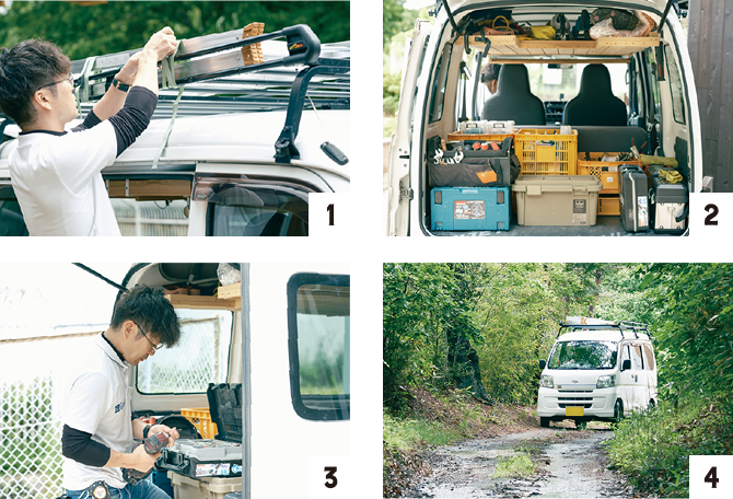 大きな荷室には工事現場で使う道具を詰め込んでいます。この1台さえあれば、たいていの作業ができる状態にしてあるので、言ってみれば「動く道具箱」。車検のときなど、相棒がいないと、仕事がはかどらなくて困るんです。