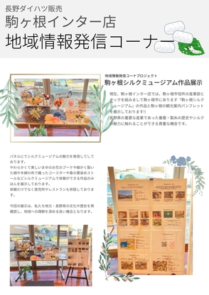 お客様と地域の生産者の方とのふれあいの場を提供するため、「ダイハツマルシェ(市場)」を開催。地元のこだわり食材や商品を多くの方に知っていただくことで、地域活性化につなげたいと思います。