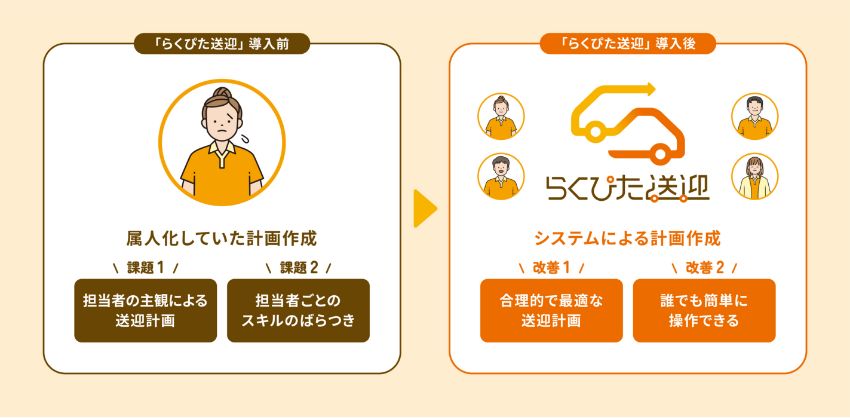 市内8施設の送迎共同化を支える「らくぴた送迎」の利便性